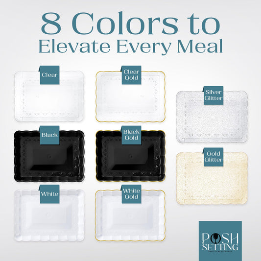 Posh Setting - Plastic Trays for Serving Food, Glitter Gold Serving Trays for Party, Plastic Serving Trays, Serving Dishes for Parties, Plastic Platters & Food Trays for Party, Plastic Serveware-9x13