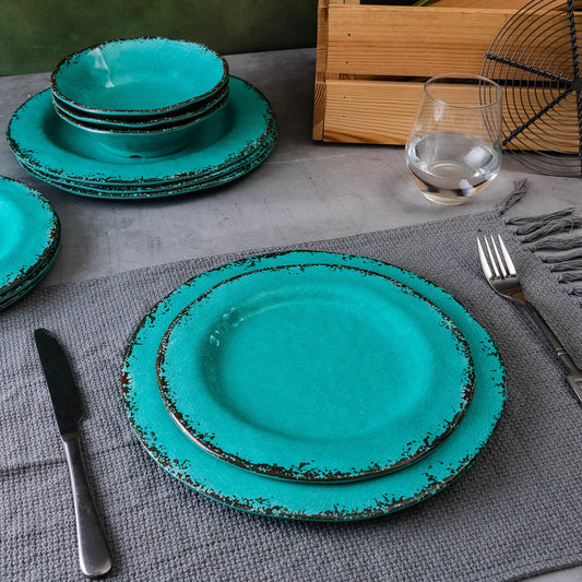 Teal Vintage Trim Melamine Serving Tray Set, Rectangular Large Serving Trays/Platters Set for Serving Food, BPA Free Food Serving Platters and Trays, Set of 2, 17.5"x 10", Teal