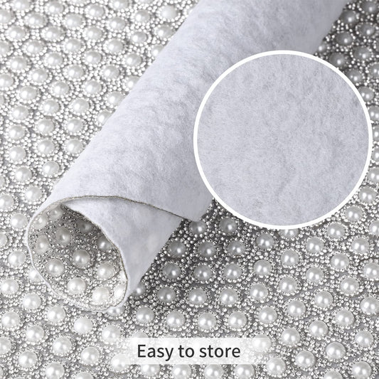 Pearl Round Placemat, 15-inch Anti-Slip Tablescapes Decorations Sparkling Bling Rhinestones Silver Placemat for Nightstand Tablecloths Centerpiece Standing T-Lights Candles Vases Mat