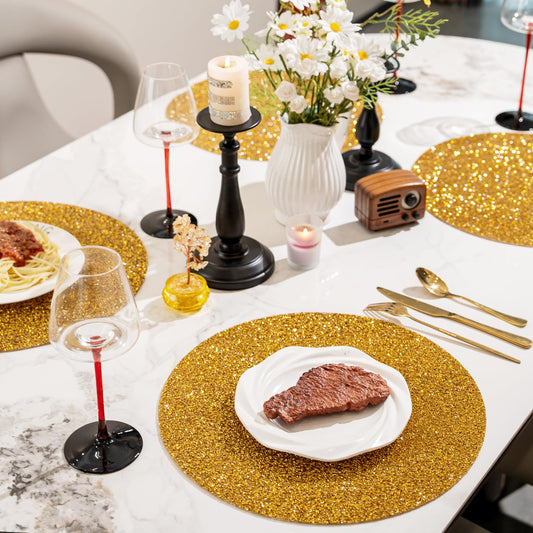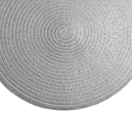 SHACOS Glitter Round Braided Placemats Set of 6 Sparkle Bling Placemats Glitz Table Mats for Home Holiday Party Wedding Festive Table Decoration (6, Silver)