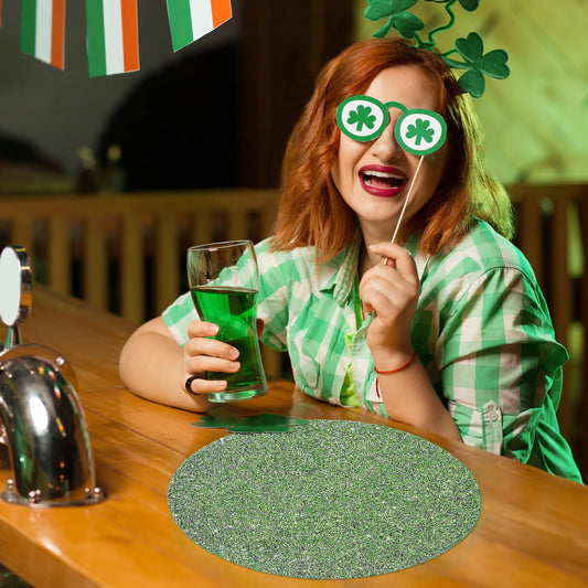 Cumouna Spring Green Placemat Sparkle Crushed Rhinestones Round Elegant Glitter Decoration Table Mat for Spring Centerpiece Kitchen Table Party Tableware Decor 15 Inches (1 pcs)