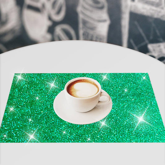 Green Placemats Emerald Heat Resistant Mat Square Placemats Green Trivets Rhinestone Decor Place Mat Crushed Diamond Decor Bling Sparkly Mat Set of 2