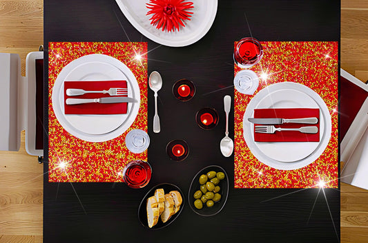 Red and Gold Placemats Colorful Bling Diamond Decor Table Mats Glitter Sparkly Heat Resistant Mat Set of 4 for Home Weedding and Party