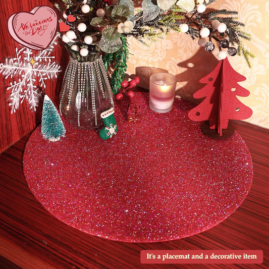 Cumouna Placemat with Red Rhinestones Round Glitter Decoration Table Mat for Valentine Holiday New Year Centerpiece Kitchen Table Party Tableware Decor 15 Inches (Red AB, 1 Piece)
