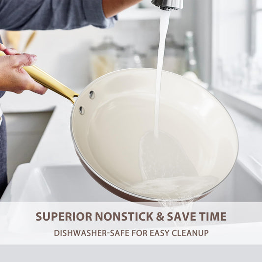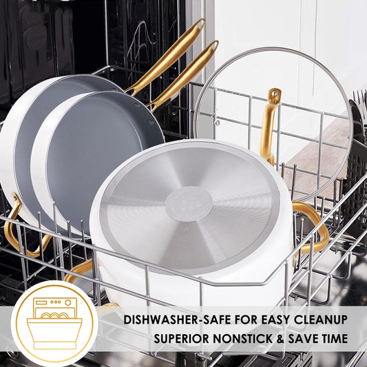 Ceramic Pots and Pans Set Nonstick - Kitchen Cookware Sets Non Toxic Cookware Set With Dutch Oven, Frying Pan Set, Saucepan, Sauté Pan, Cooking Utensils Set, White Gold Pans for Cooking Pot Set Gifts