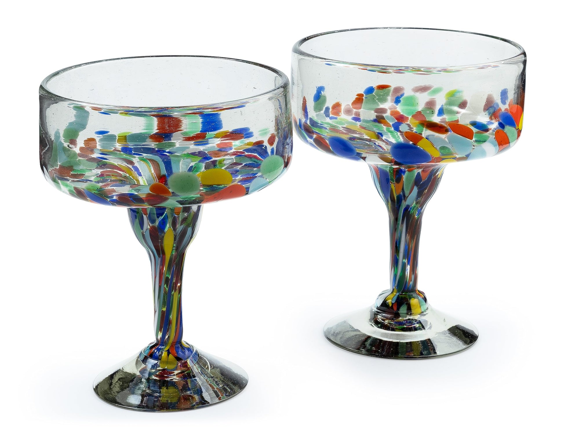 16 oz Hand Blown Mexican Margarita Glasses Set of 2 - Confetti