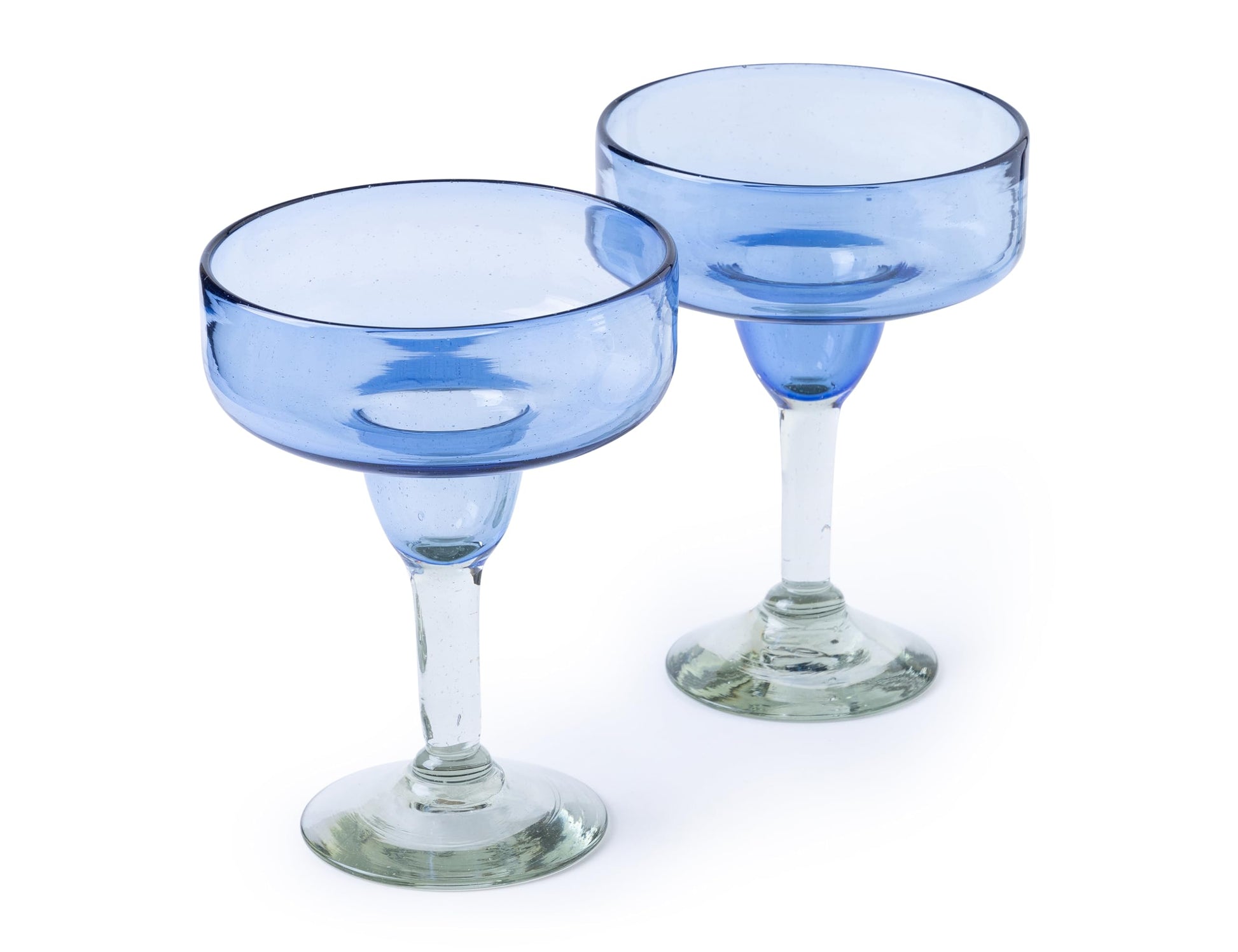 16 oz Hand Blown Mexican Margarita Glasses Set of 2 - Light Cobalt - MEXICAN GLASSWARE