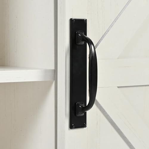- [Timeless Farmhouse Elegance] This Large kitchen island measures 53.75''W x 28.75''D x 36.5'' H. It is designed in a beautiful and elegant farmhouse style, adding a cozy natural vibes to your space. Its warm distressed white cabinets, brown wood grain tabletops and lend a touch of farmhouse charm. Additionally, the metal trim and classic Sliding barn door elements add a retro accent, making this kitchen cabinet fancier and allowing it to perfectly blend into your kitchen and dining room.