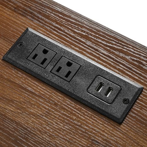 - [Countertop with Power Supply] This exquisitely designed kitchen cart features a sophisticated built-in charging station, boasting 2 AC outlets and 2 USB ports to effortlessly accommodate all of your kitchen appliance power requirements. Elevate your culinary experience by conveniently charging your coffee maker, juicer, and toaster on the wood grain countertop of this farmhouse kitchen island.