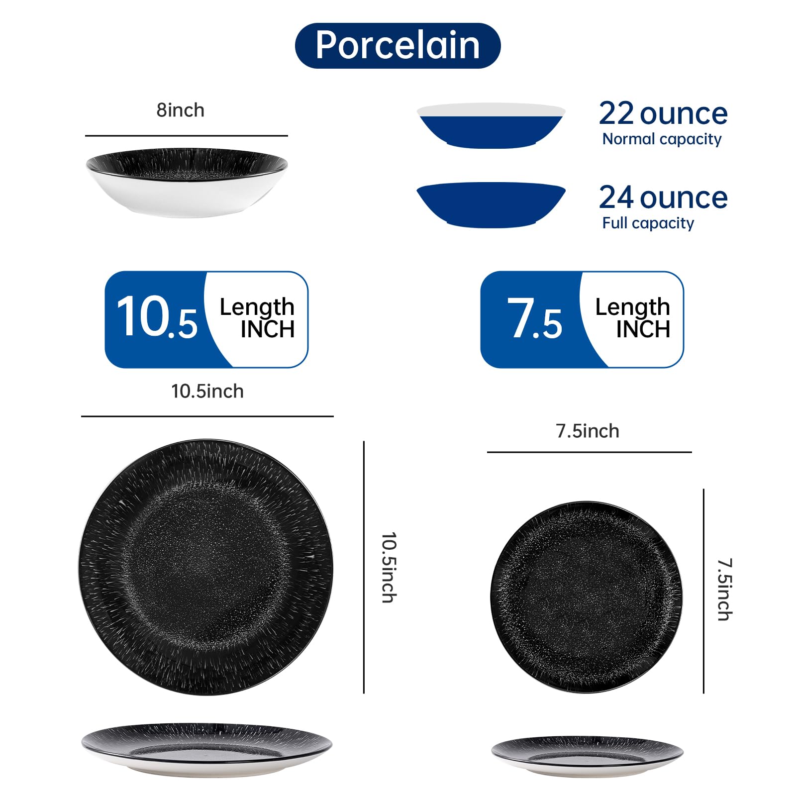 - A VERSATILE STYLE FOR MULTIPLE OCCASIONS - Modern and Stylish Porcelain dinnerware sets can match any kinds of table linen and suitable for dessert, salad, snack, appetizers, raw veggies, sushi, lunch, steak, bread & butter and any other goodies you want to showcase for any occasions or just for everyday use