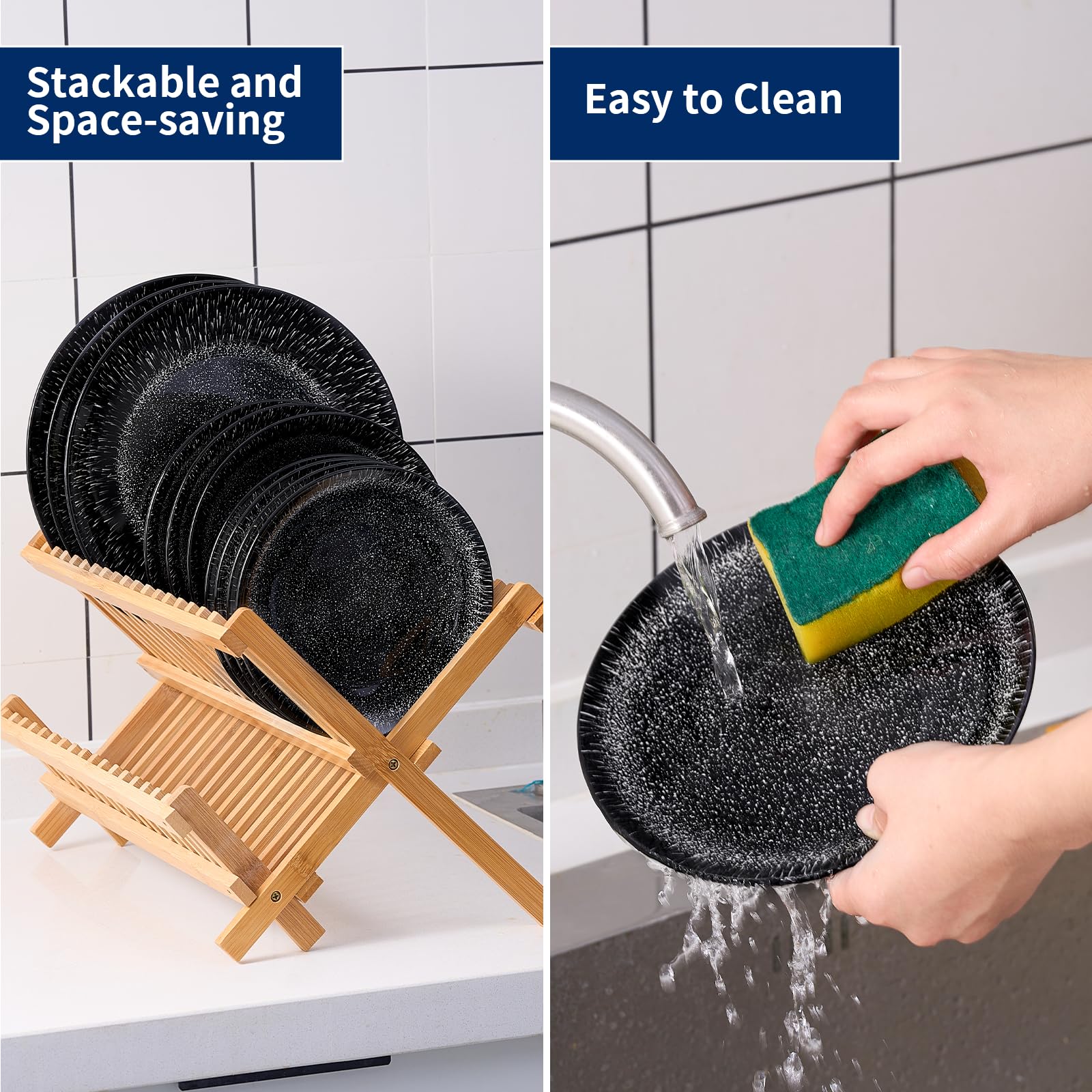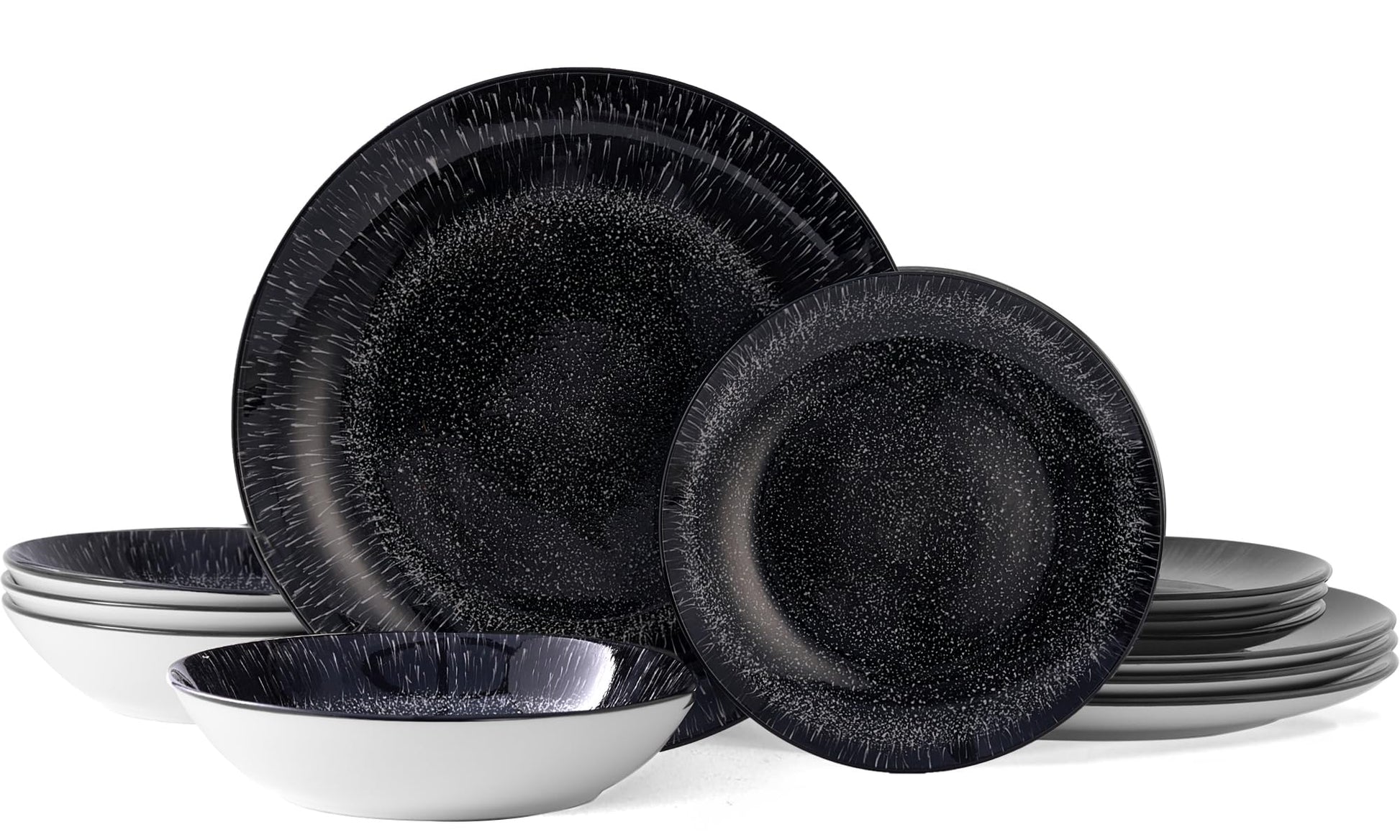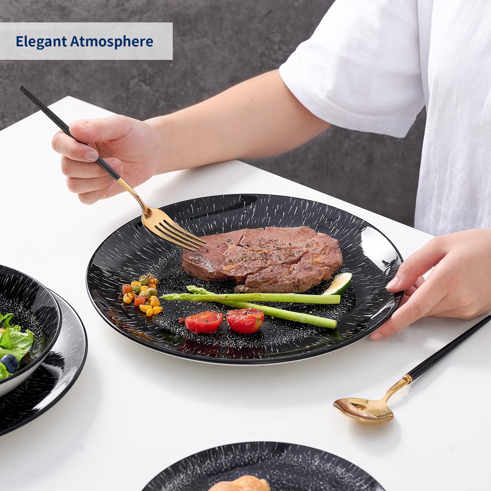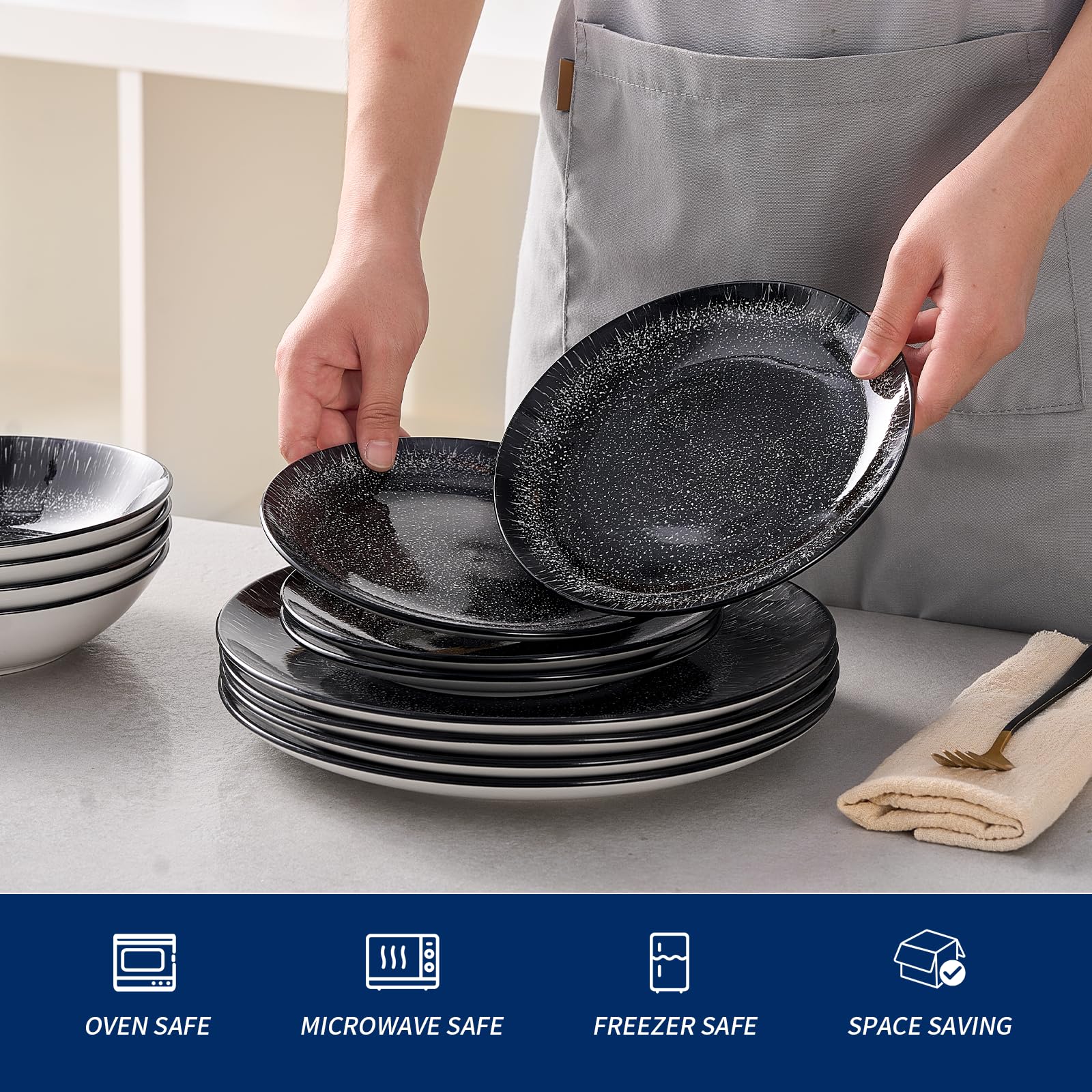 Bestone Plates and Bowls Sets,12 Pieces Round Porcelain Dinnerware Sets,Dishes, Plates, Dishware Sets,Chip Resistant Ceramic Dish Set Dining Dinner Ware Service for 4,Starry Sky Black