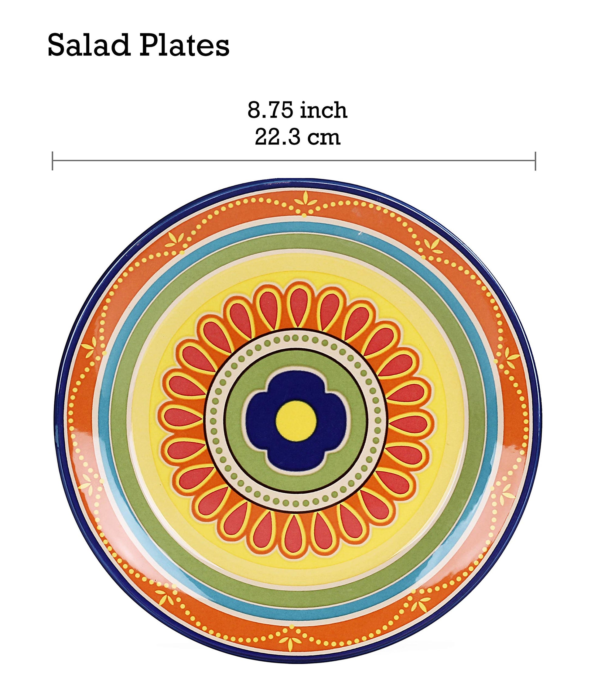 Bico Tunisian Salad Plates Set of 4, Ceramic, 8.75 inch, Microwave & Dishwasher Safe