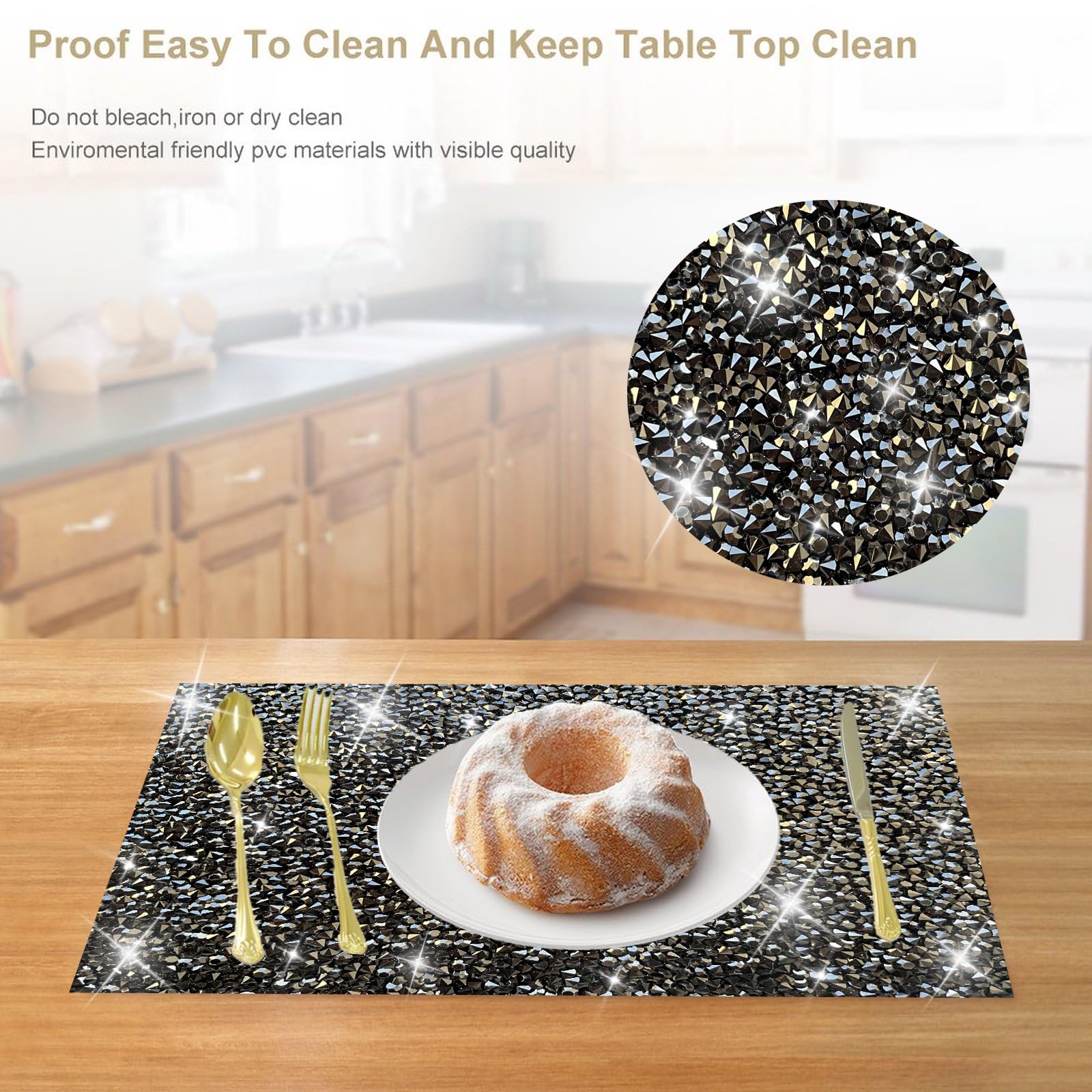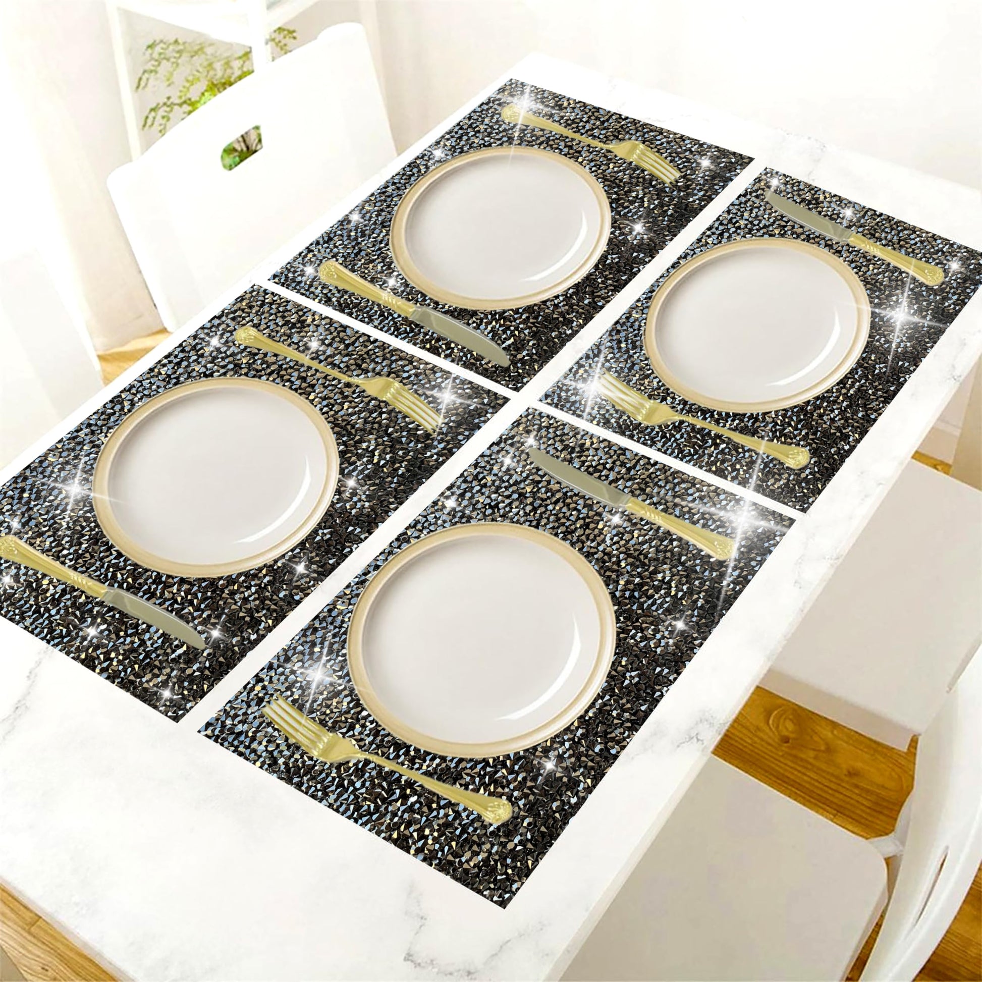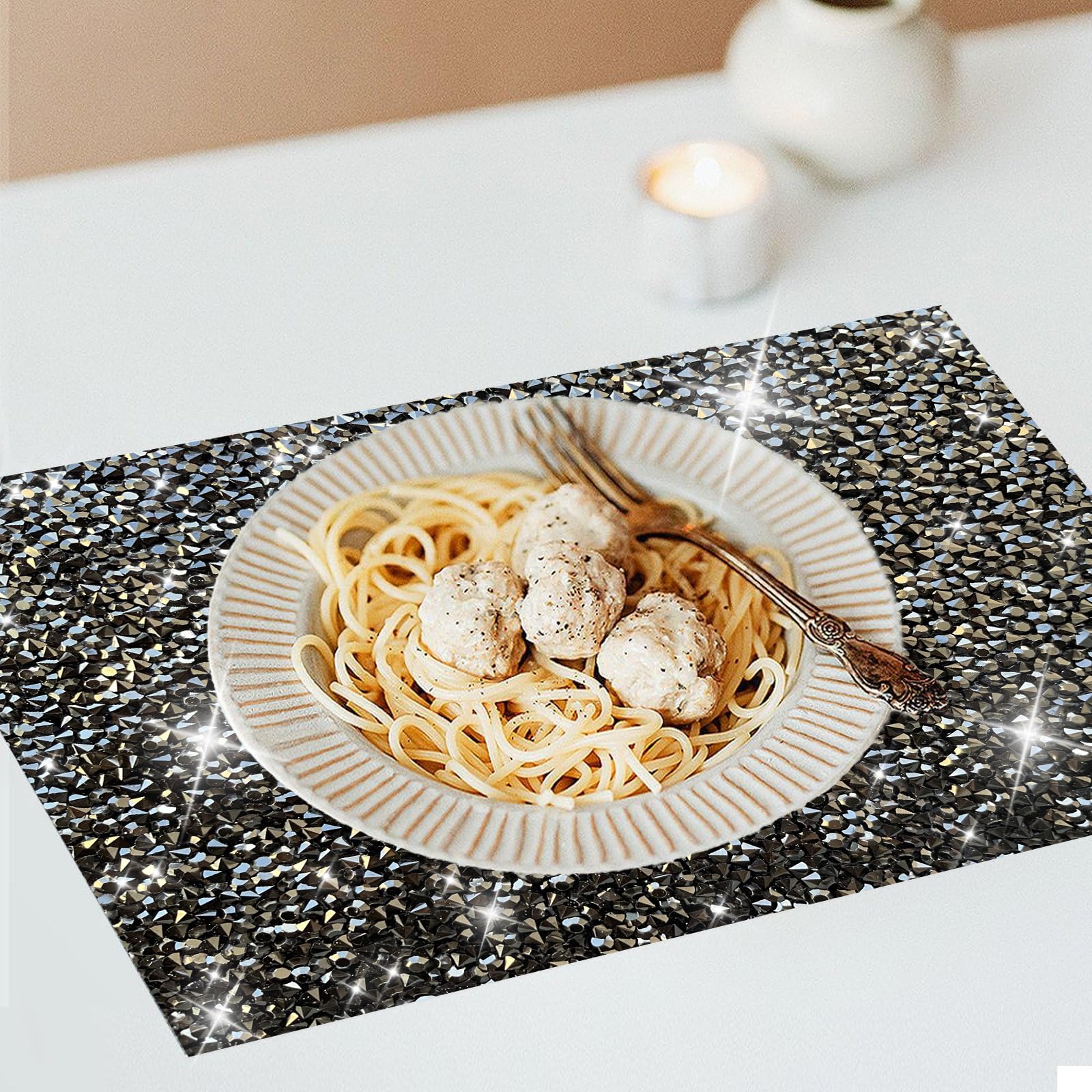 - Sparkling Rhinestone Design: Each placemat is adorned with sparkling rhinestones, giving them an elegant shine that instantly elevates any table setting.