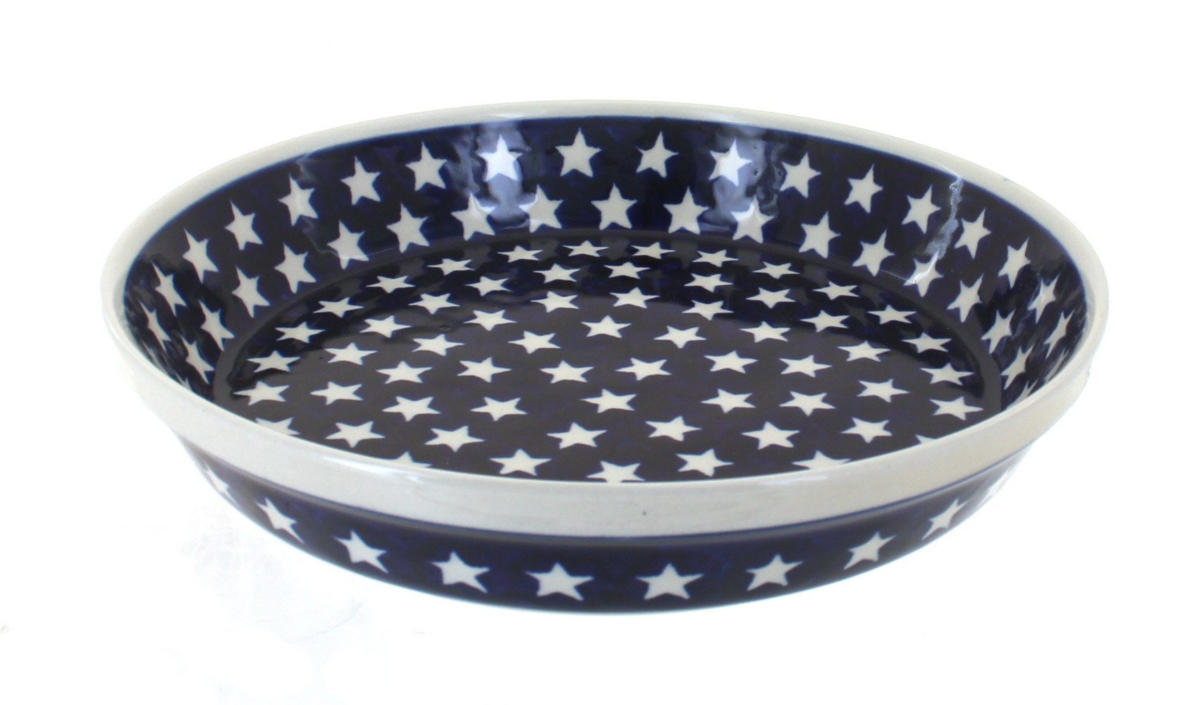 - Finally, a hand-crafted pie plate designed with your recipes in mind! High fired ceramics have long been praised for their durability and even heating while baking-and ours are double glazed for a naturally non-stick finish. A vibrant hand-painted design ensures that you get a one-of-a-kind piece that is ready to serve straight from the oven! 9.75 inch diameter x 1.75 inches deep