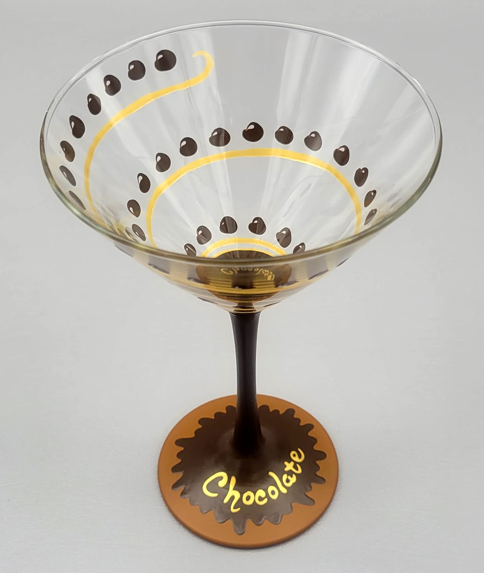 Details: Perfect for the chocolate lover! This martini cocktail glass is all about chocolate.
