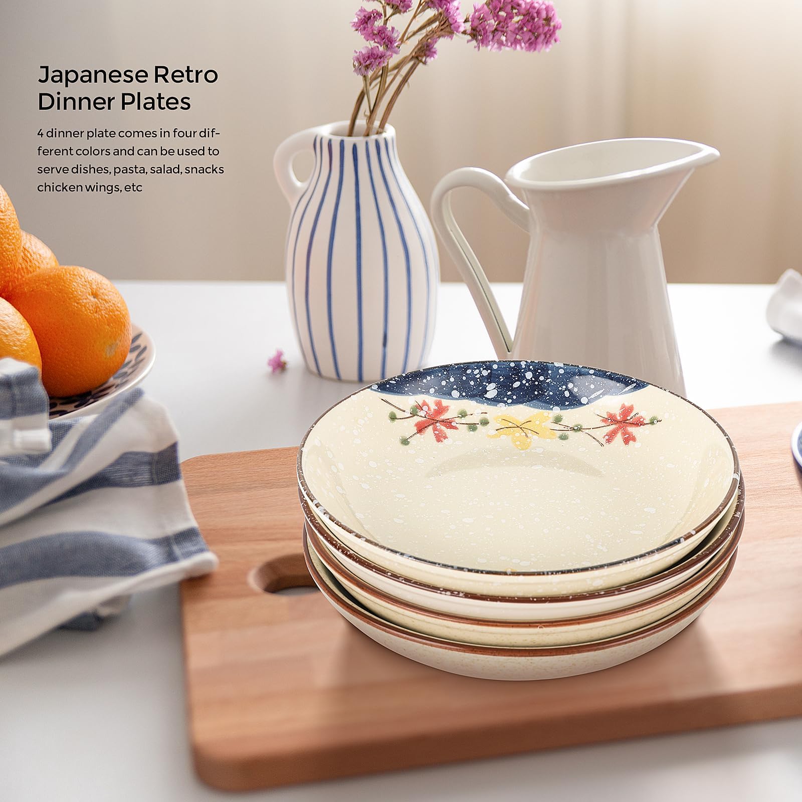 clothmile 7 Inch Japanese Retro Ceramic Dinner Plates Set of 4 Japanese Style Plates Asian Chinese Plates for Cereal, Soup, Dessert, Snack, Fruit, Salsa for Christmas Holiday Present