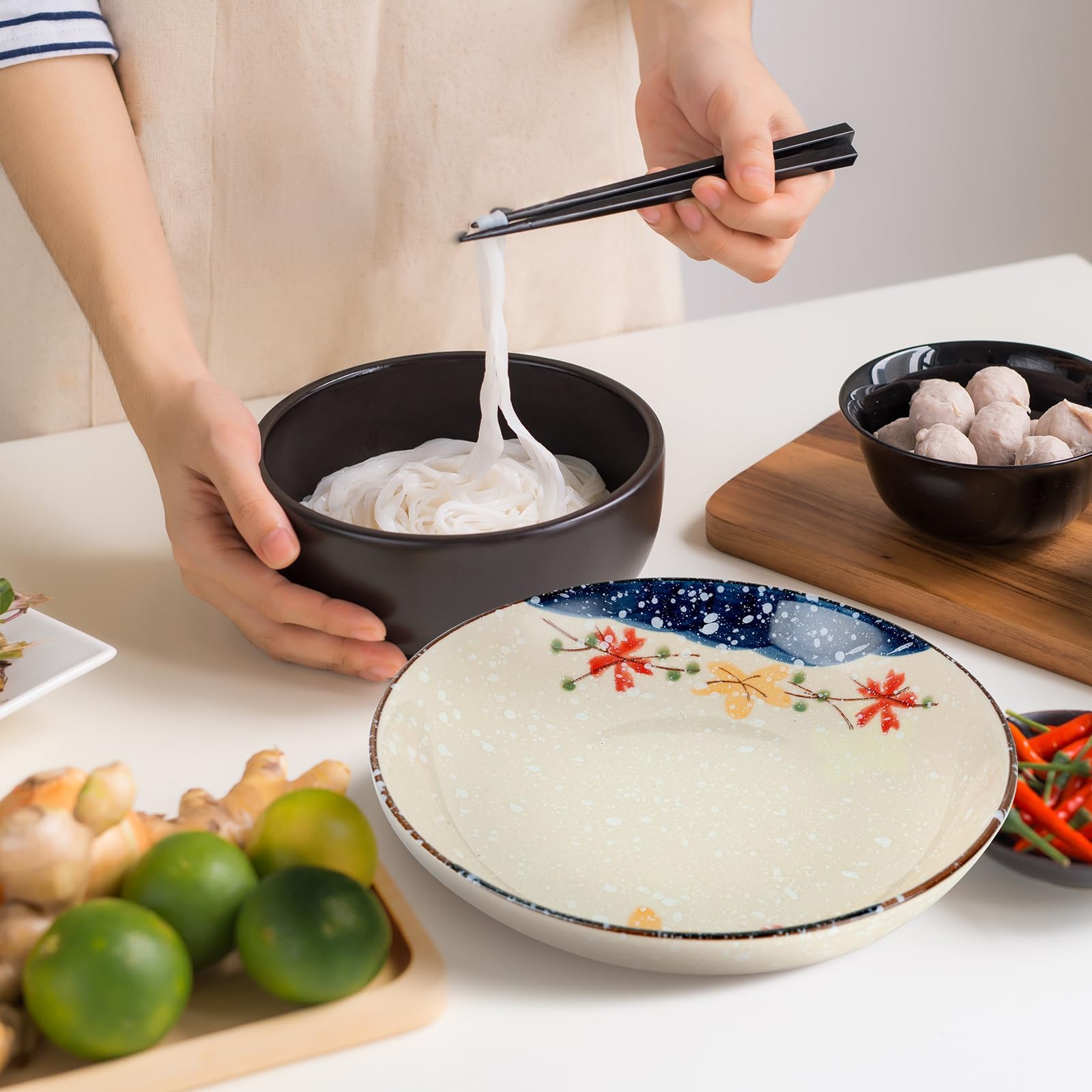 - Exquisite Workmanship: Each piece of ceramic dinnerware is exquisitely handmade with smooth and shiny surface and simple and generous hand-painted patterns, which is not only a must-have for kitchen tableware, but also can add elegance to your kitchen