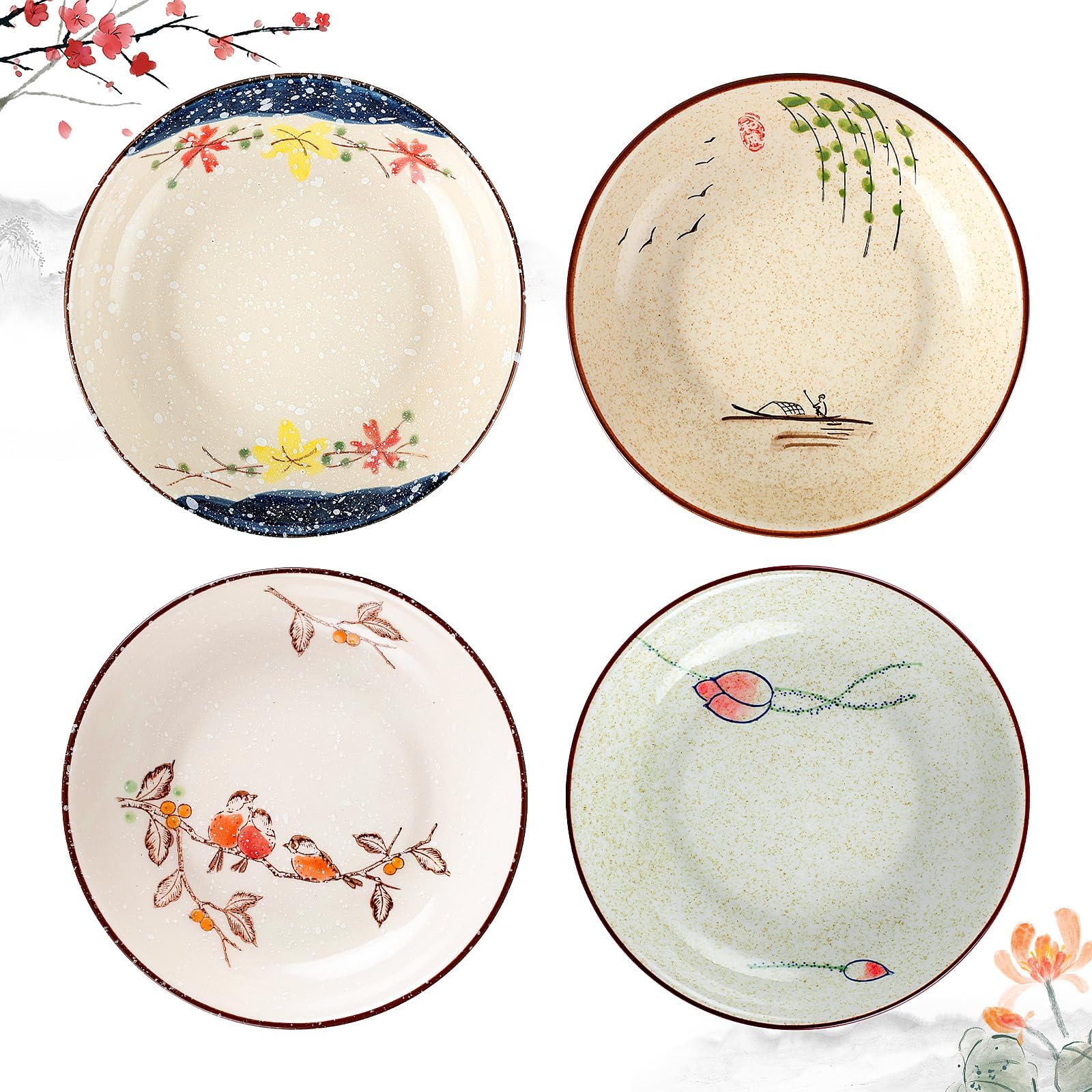 - Package Content: You will receive 4pcs Japanese ceramic plates ,each plate 7 inches. With hand-painted patterns: flower, bird, fish, lotus flower, fine and elegant. The style is classic, can meet your family needs and replacement needs