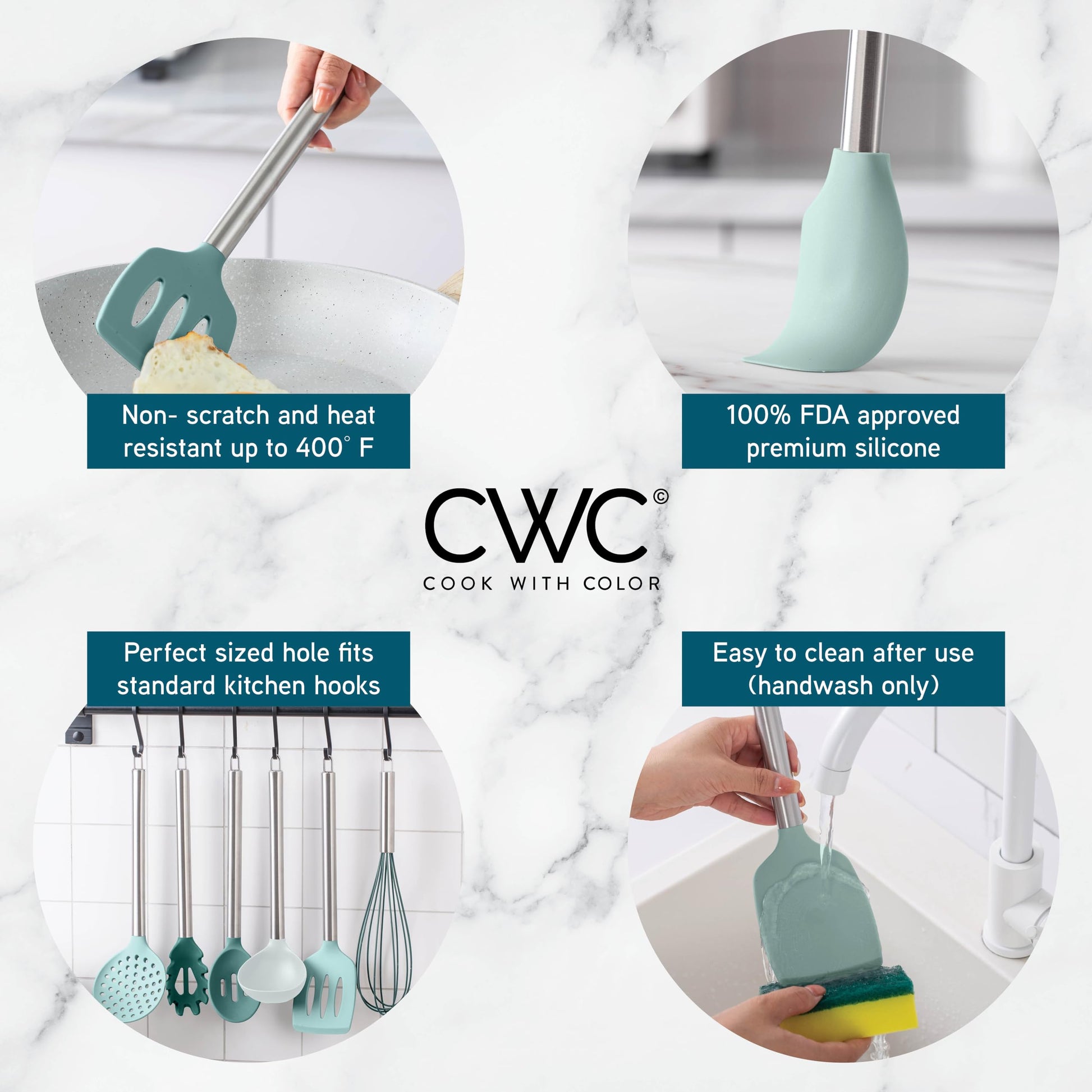 Teal COOK WITH COLOR Silicone Cooking Utensils, Kitchen Utensil Set, Easy to Clean Silicone Kitchen Utensils, Cooking Utensils for Nonstick Cookware, Kitchen Gadgets Set, 10 Pieces, Teal