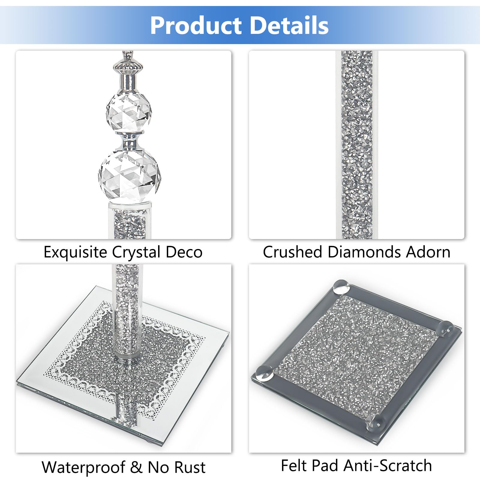 - 💎【Unique Luxury Design】Our crystal crushed diamond paper towel holder is a contemporary vertical paper towel holder, hand-painted and meticulously designed by our designers. The elegant and luxurious crystals and crushed diamonds on the top are perfectly blended and shine brightly in the light. Add artistic decoration to your home.