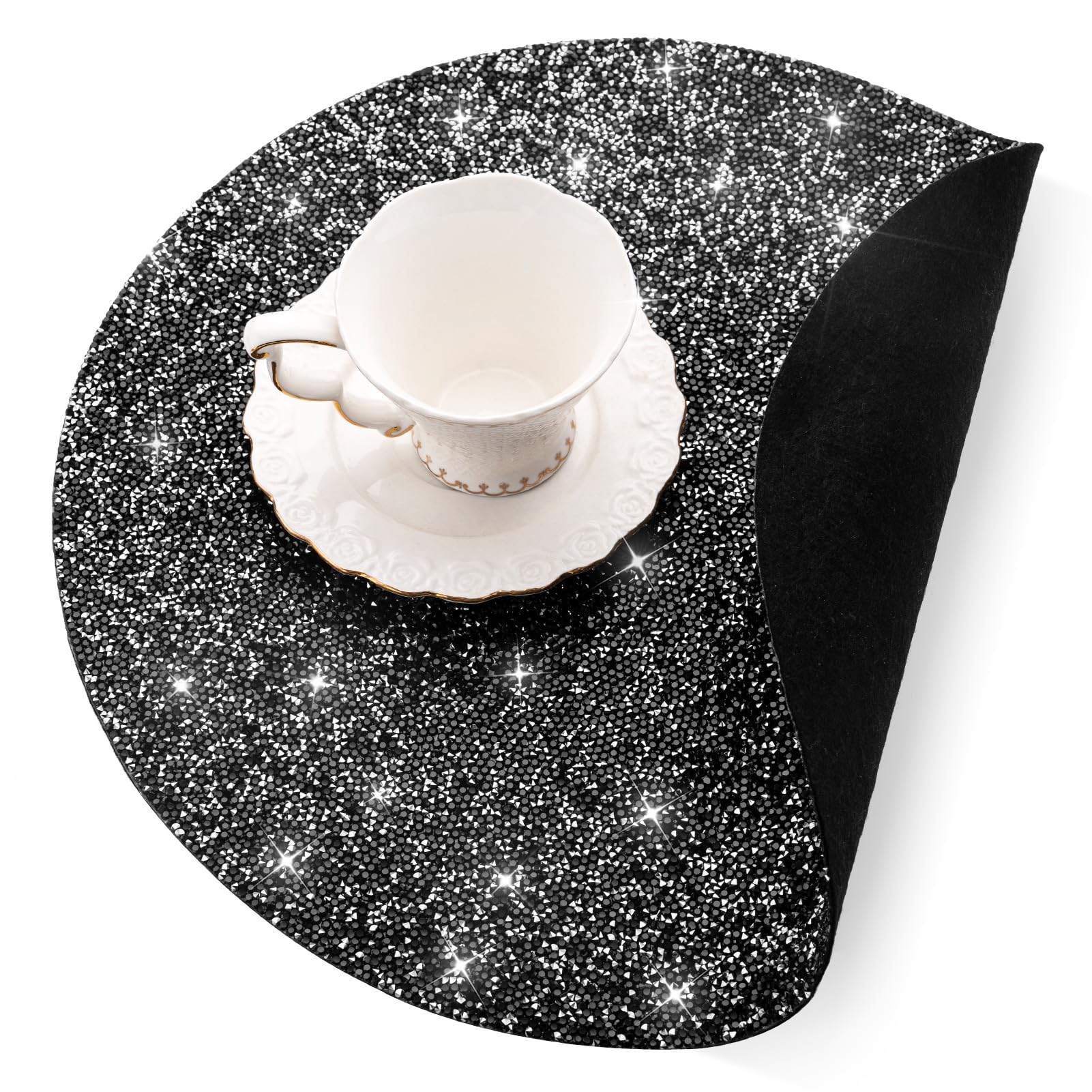 - Round Placemat:1 Piece rhinestones placemat; Size: Approx 15 inches. The black placemat is crafted from high-quality sparkle rhinestones.