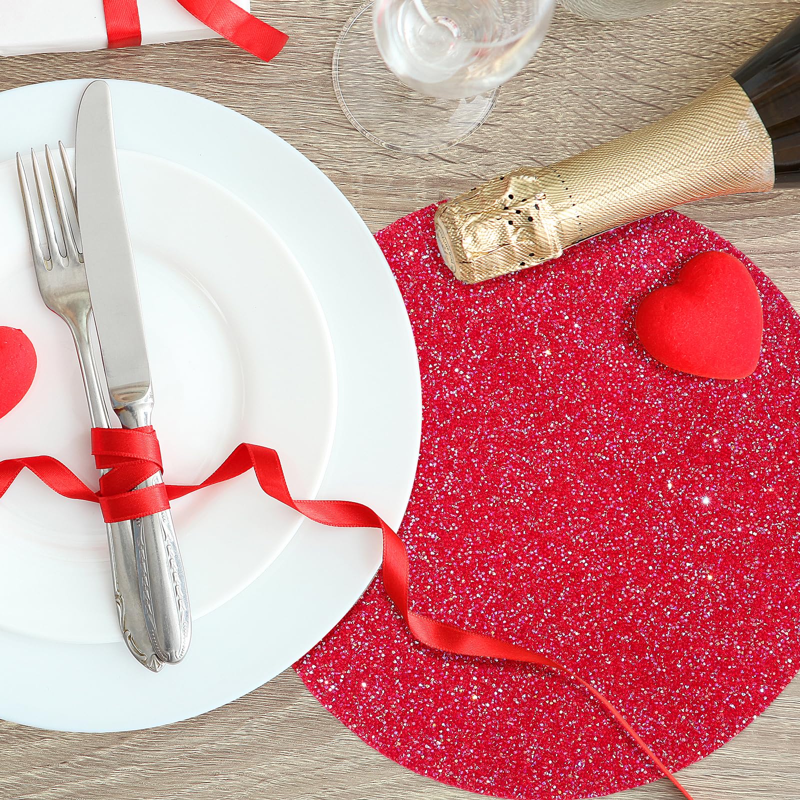 - Valentine's Day Placemat:1 Piece rhinestones placemat; Size: Approx 15 inches. The iridescent red placemat is crafted from high-quality sparkle rhinestones.