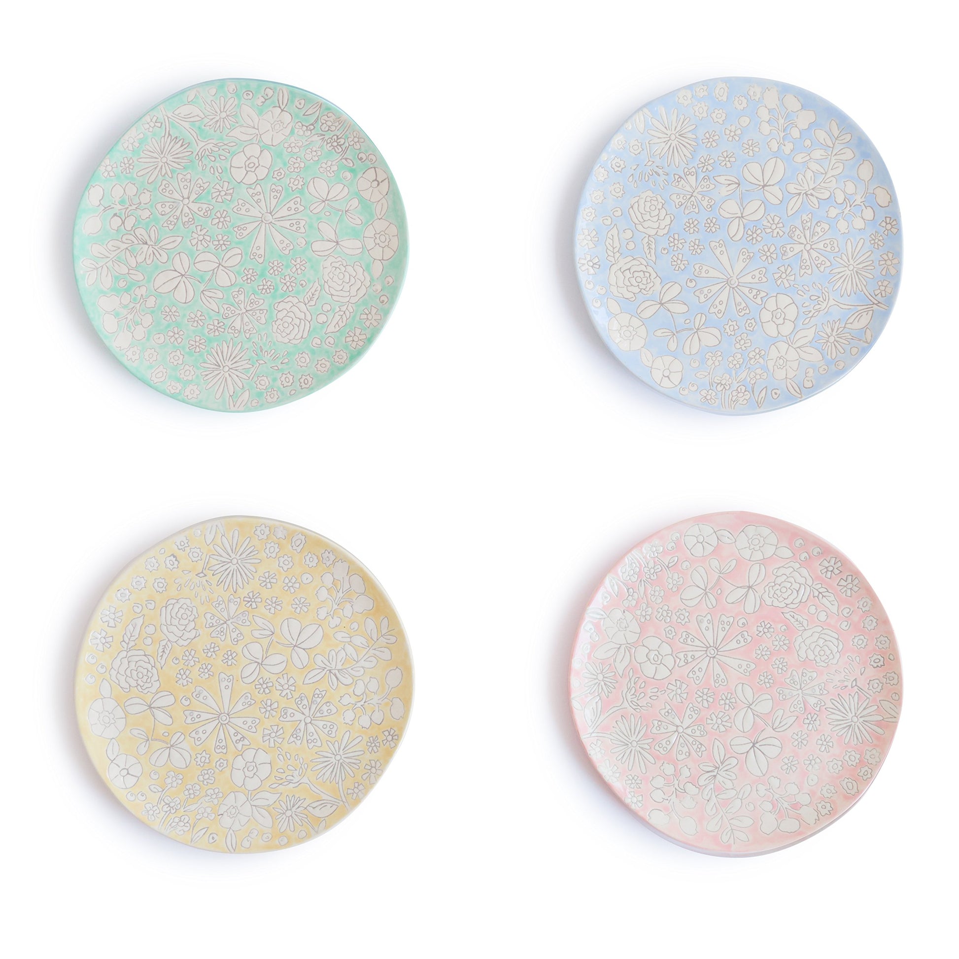 Dorotea Ceramics is inspired by the beauty of nature and artist Carolina Silva’s connection to the outdoors. This connection translates into ceramic pieces that acknowledge the value of the handmade and the imperfect. The patterns, colors and irregularities of each piece are drawn from the observation of natural growth and a curiosity about the botanical world, where flowers search for light and harmony with joy. The work follows this peaceful search from the artists’ hands to its place on your table. This beautiful collection of dinnerware and accessories features organic, handmade-inspired shapes that have subtle pops of whimsical color. Crafted from high-quality stoneware, there may be slight imperfections or variations in design and dimensions. Finished by hand, each piece features a delicate, recessed floral pattern and is carefully hand-painted allowing for slight differences in the glaze that add to the artisanal beauty.