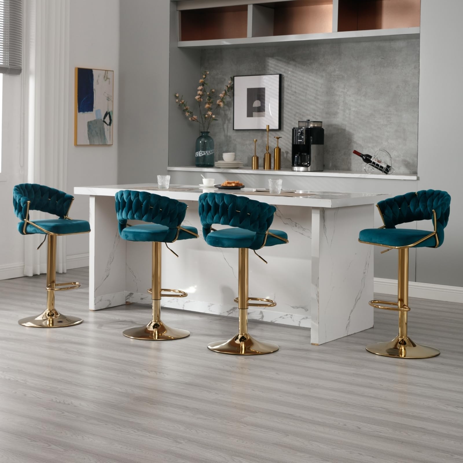 - Elegant Design: Featuring a plush velvet upholstery with a woven backrest, this bar stool is designed to add a touch of luxury and sophistication to your kitchen, bar, or counter area.