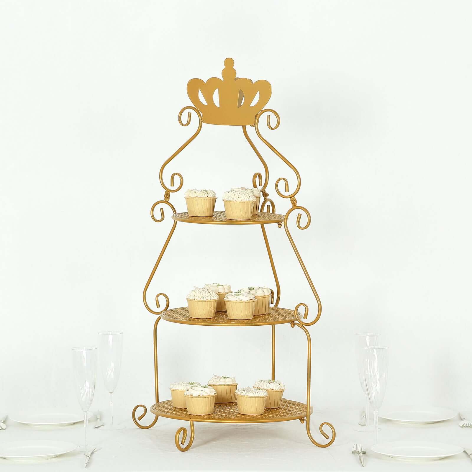 The 3-Tier Crown Top Round Metal Gold Cupcake Stand is not just a functional item but also a stylish addition to any event. Its durable construction, easy assembly, and versatile design make it an essential element for creating an impressive dessert table.