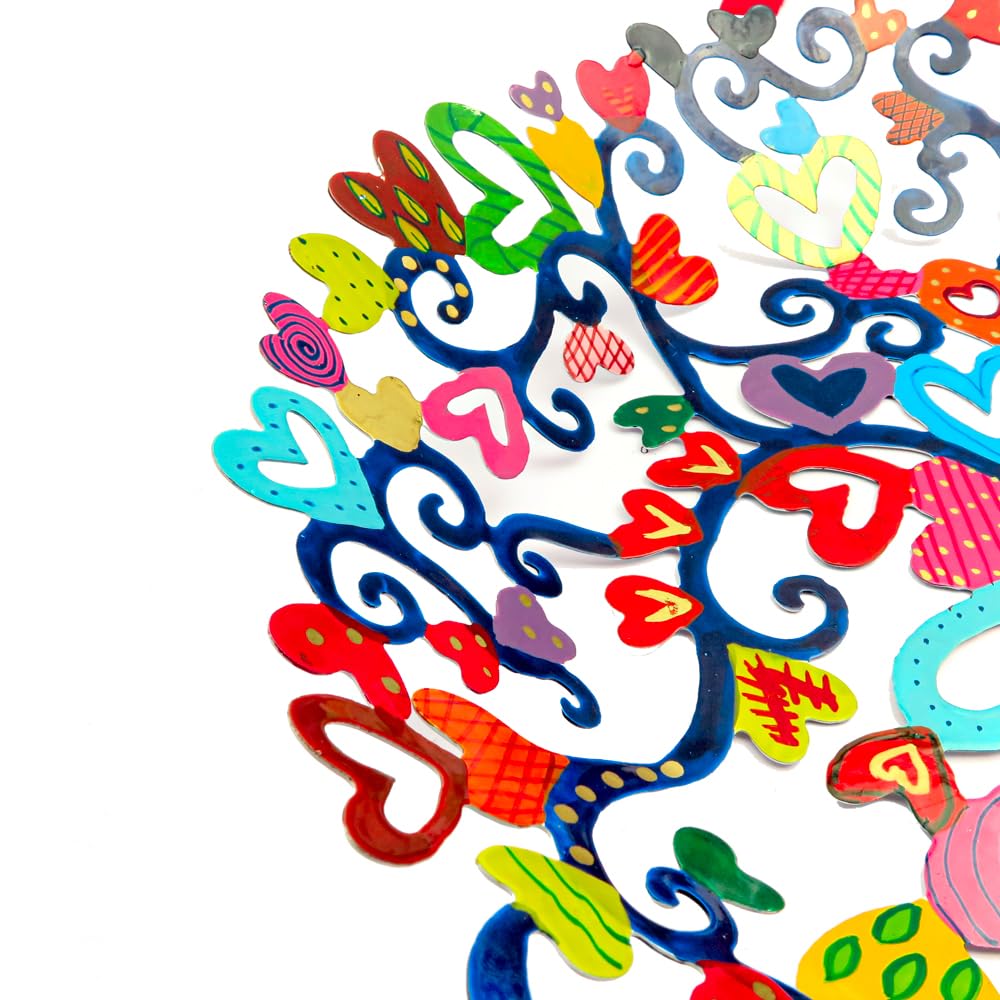 EMANUEL Yair Decorative Metal Fruit Bowl | Vibrant Hand Painted Bowl | Hangable Centerpiece Bowl for Home Decor and Gifting | Judaica Art (14 inch, Hearts)