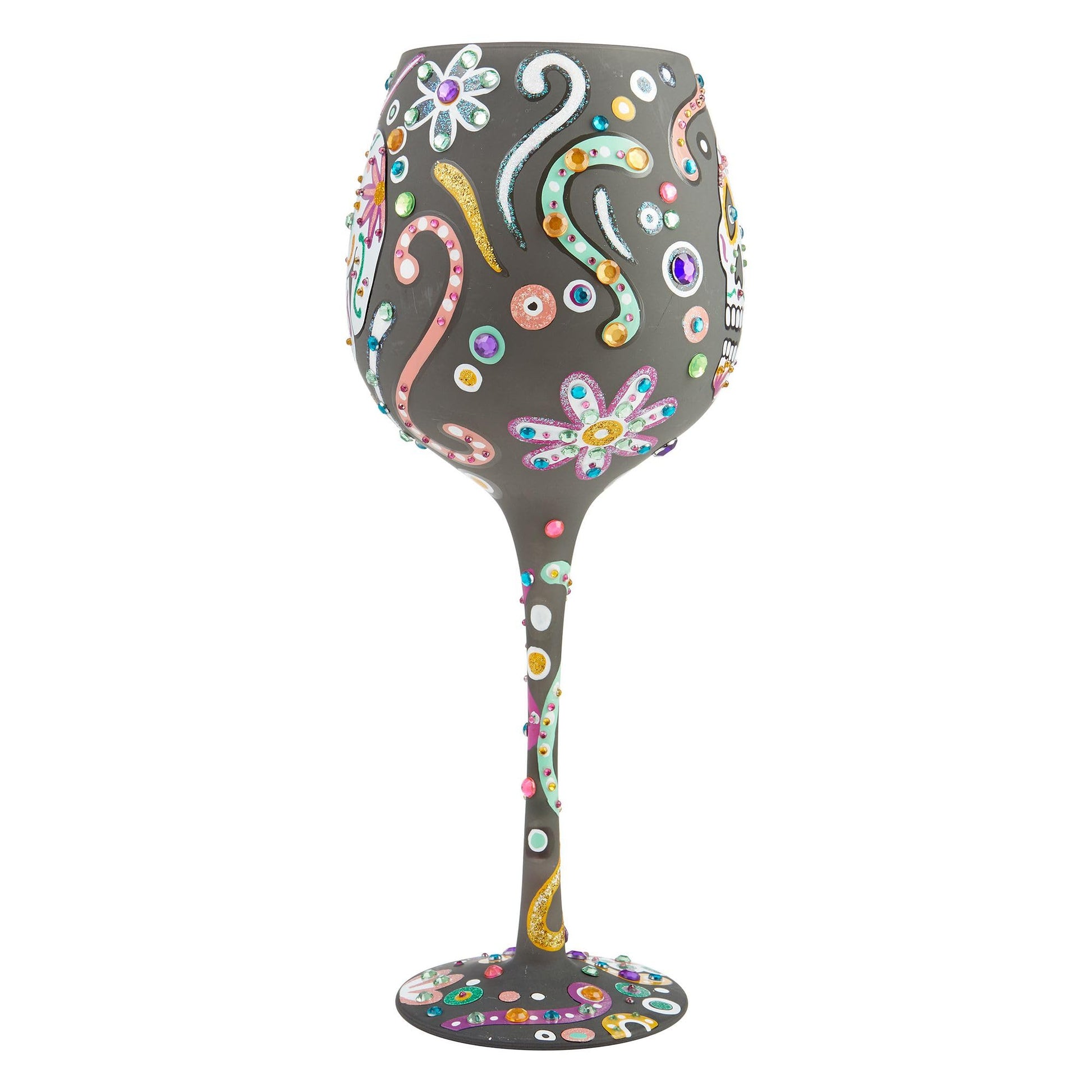 Details: Designs by Lolita are colorful combinations of fun entertainment and celebration well spent with the special people in our lives The Sugar Skull is used as a symbol of celebration to honor the lost Toast to those gone with this spooktacular wine glass to fill your hallowed night's festivities with just the right combination of spellbinding and spooky About us Enesco is committed to BRING JOY EVERY DAY The premier global destination for high-quality giftware and home décor our prestigious family of brands includes Department 56 Village Things Remembered Foundations Jim Shore Heartwood Creek Disney Traditions by Jim Shore Disney Showcase Collection Disney by Britto Designs by Lolita Our Name is Mud and many more