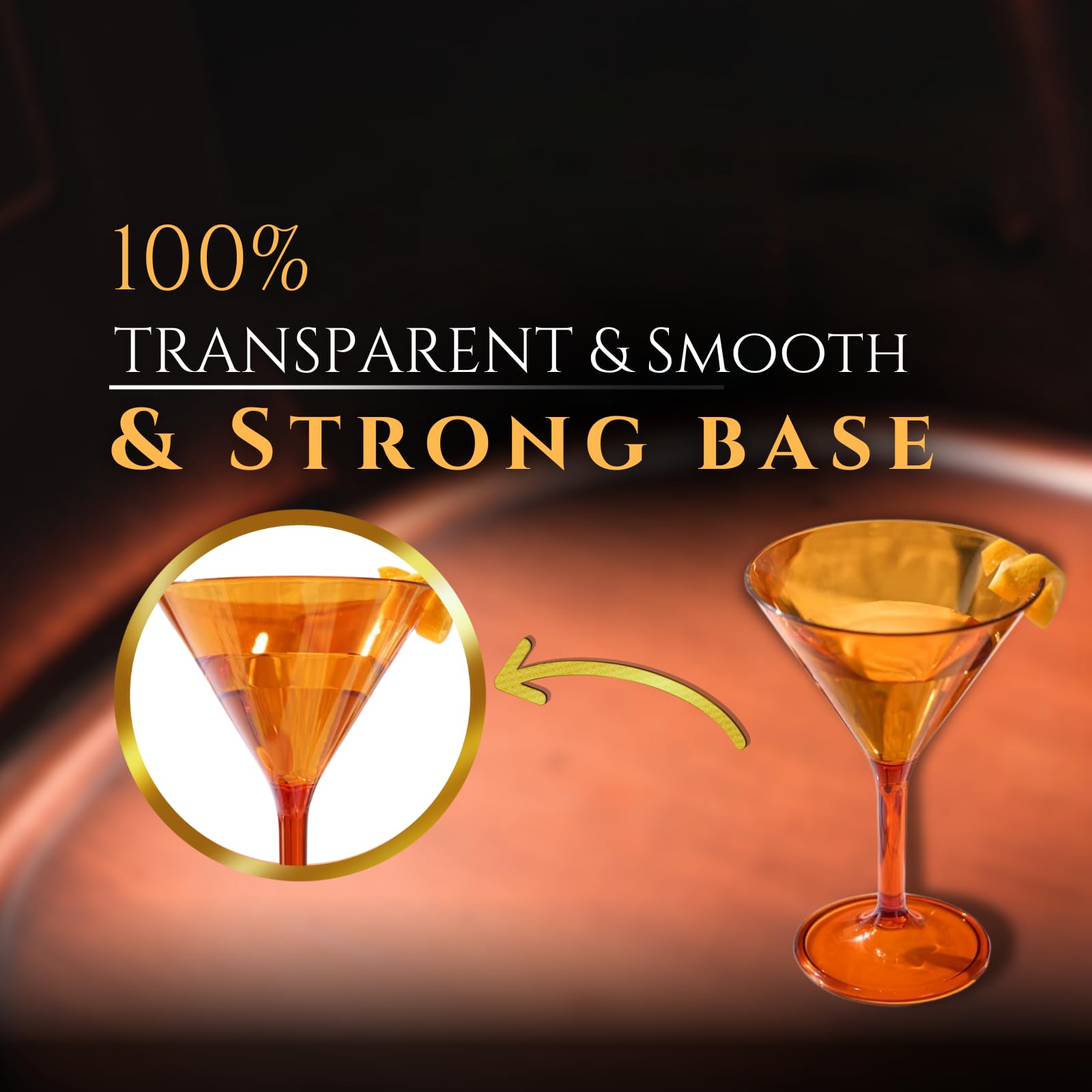 - Keep your drink cold and classy with this Plastic Muted Colored Martini Glasses Set by The Wine Savant. Designed for indoor and outdoor use, these colored plastic martini glasses are perfect for serving your favorite alcoholic beverage in style. Reusable and shatterproof, these plastic glasses won't break when dropped. Each glass holds 10 ounces of liquor. *DISHWASHER SAFE*