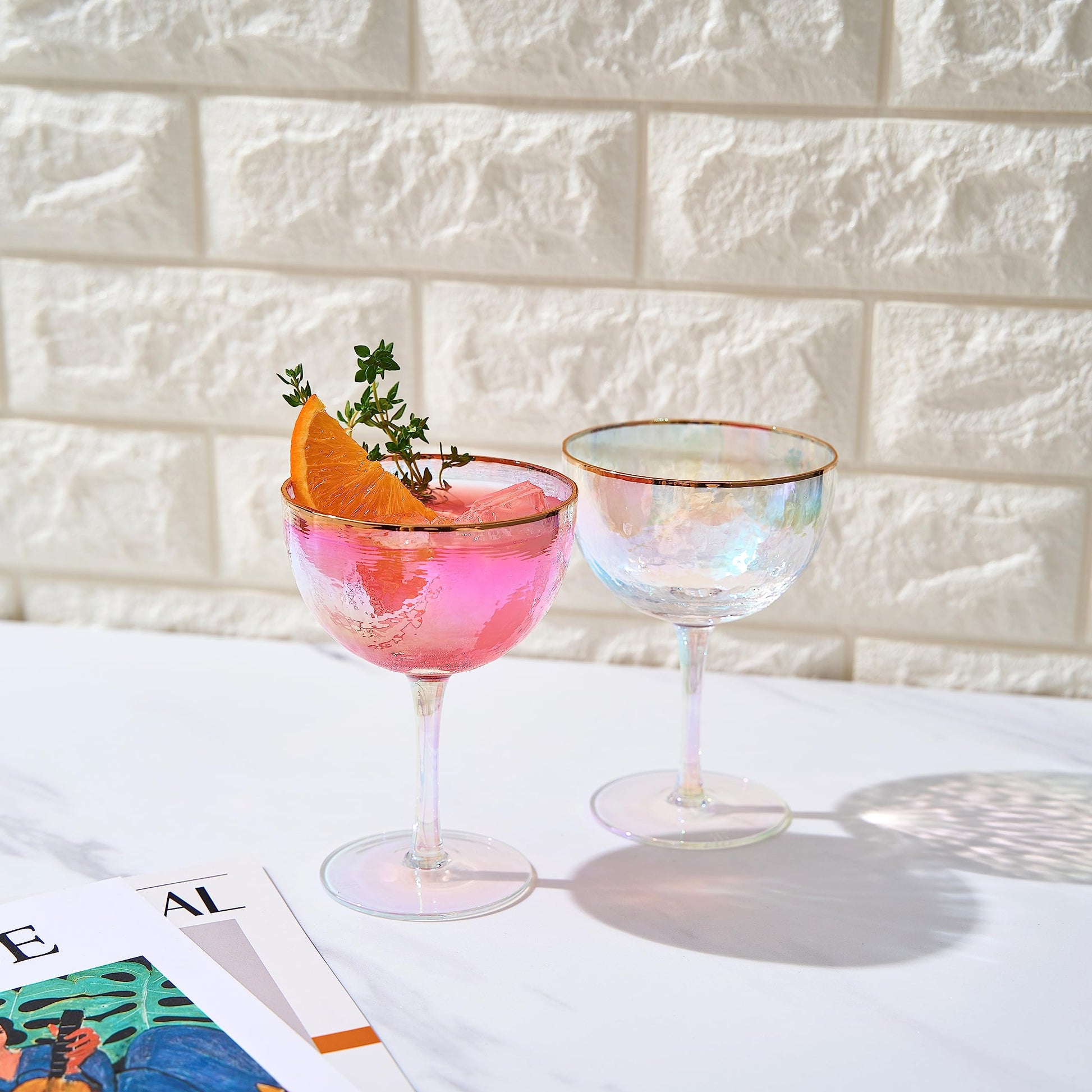 - Not only do these glasses elevate your own drinking experience, but they also make a memorable and thoughtful gift for your loved ones. The set of two glasses allows you to share the enchantment and beauty of these coupes with someone special. Whether it's a birthday, anniversary, or any occasion worth celebrating, these glasses will be cherished and admired as a symbol of elegance and style.