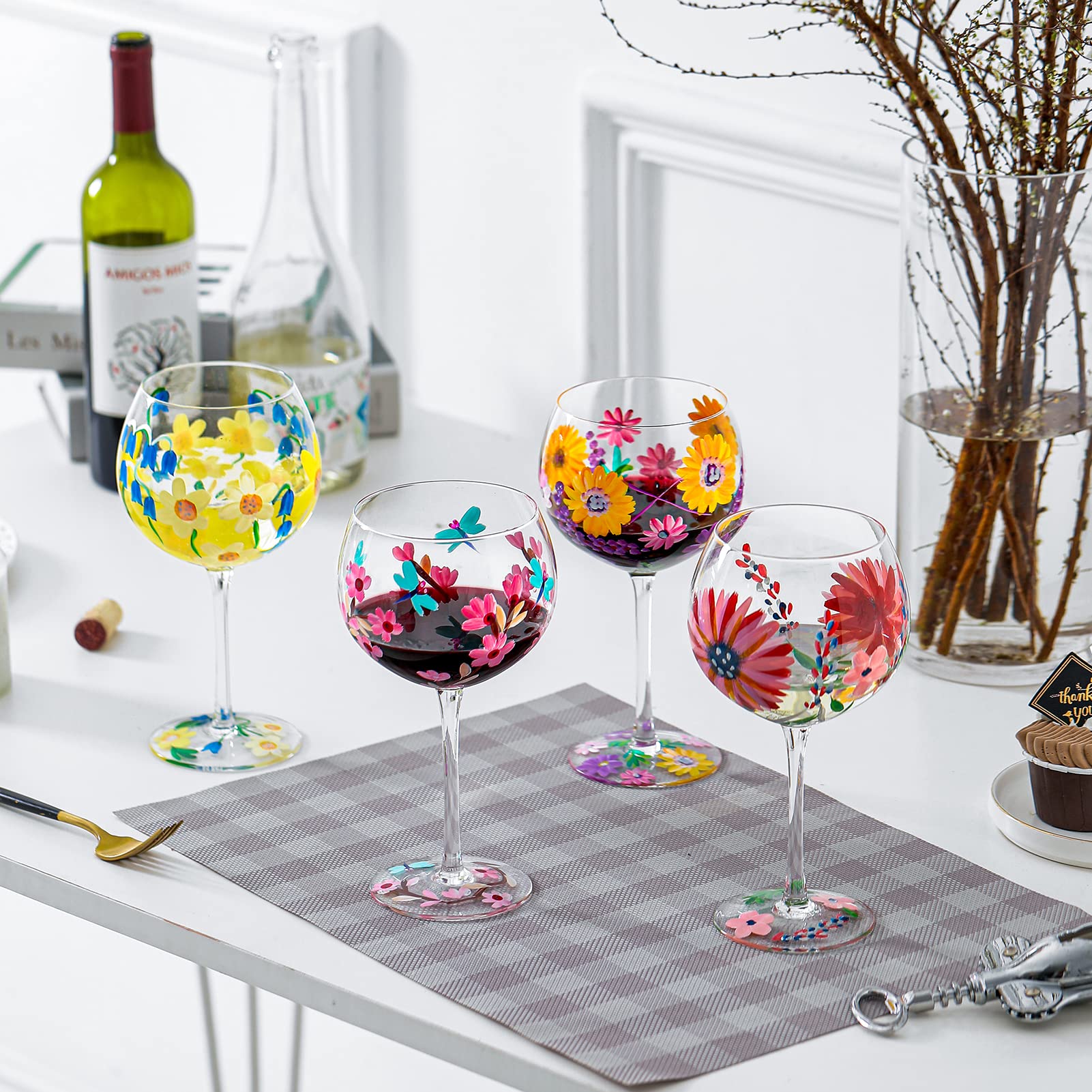- 🌸 These Hand-painted Glasses are an entertaining staple. Sophisticated with hand-drawn nature decoration, they add visual interest and high style to the table or home bar. The crystal clear bowls artfully capture the light, playfully reflecting it back, while the elegant stems fit effortlessly in your hands. Honestly, these are glasses that demand to be savored every day.
