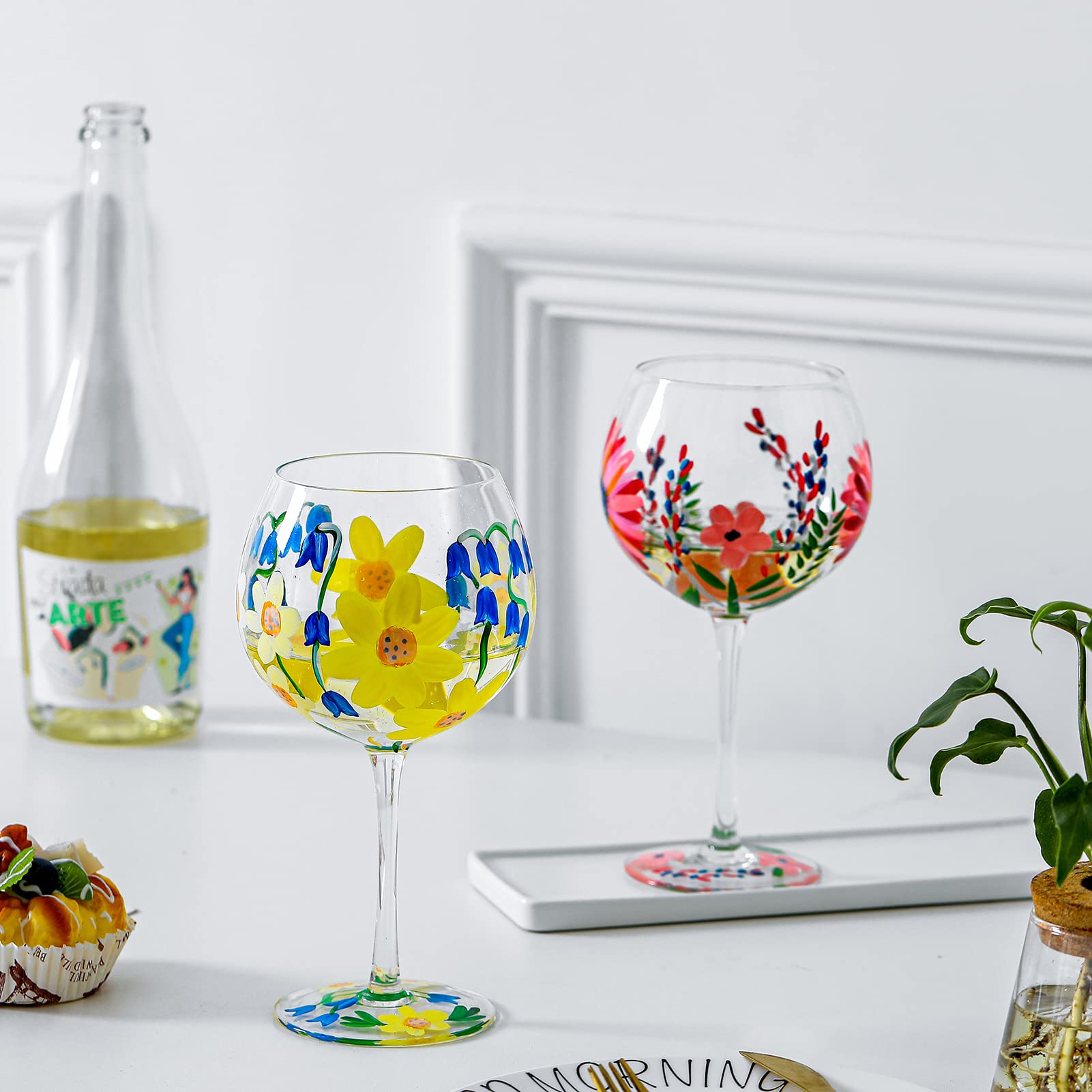 - 🌸 These Hand-painted Glasses are an entertaining staple. Sophisticated with hand-drawn nature decoration, they add visual interest and high style to the table or home bar. The crystal clear bowls artfully capture the light, playfully reflecting it back, while the elegant stems fit effortlessly in your hands. Honestly, these are glasses that demand to be savored every day