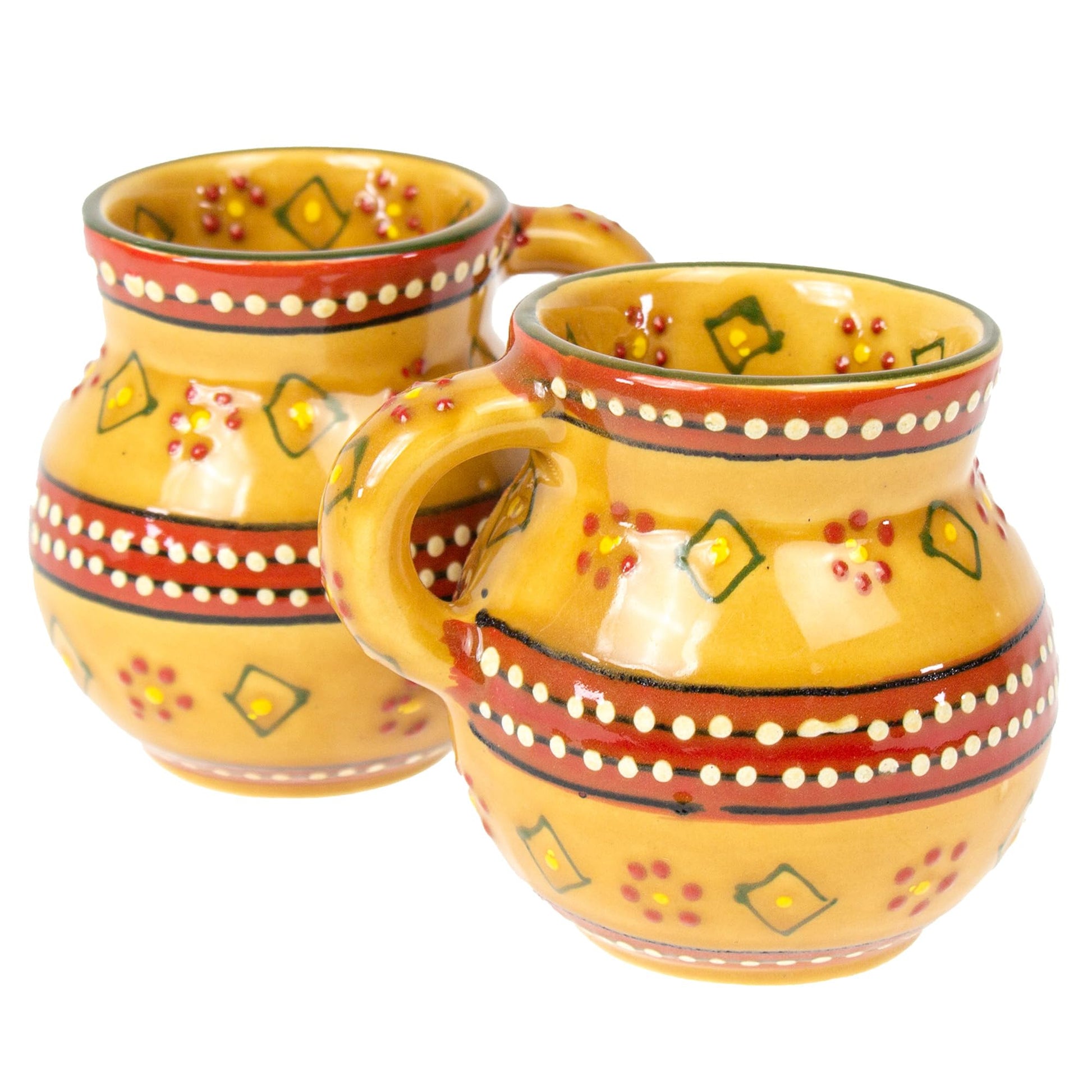 Global Crafts Encantada Handmade Hand-Painted Authentic Mexican Pottery Mugs (2-pack, Gold)