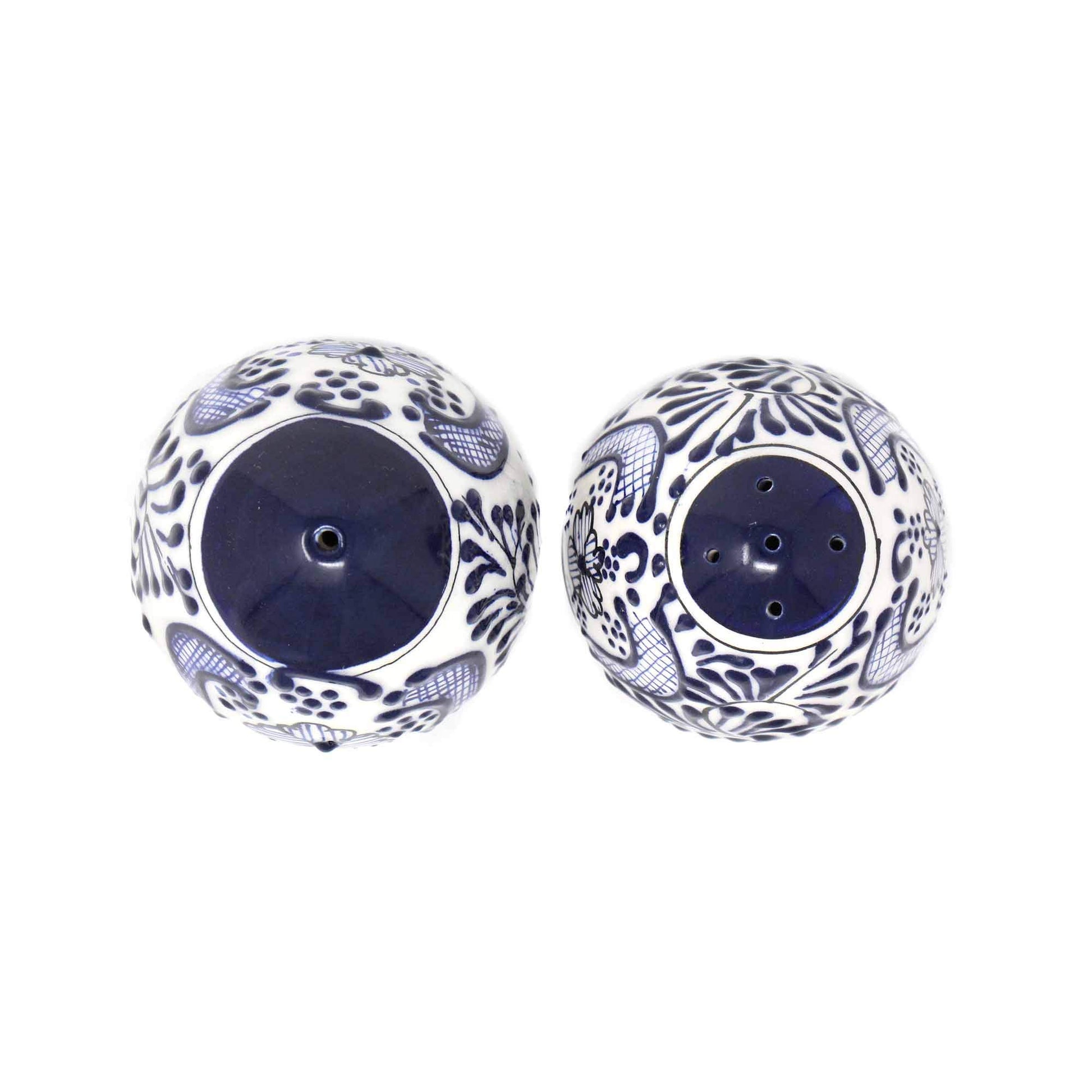 Global Crafts Encantada Handmade Hand-Painted Authentic Mexican Pottery, Salt and Pepper Shaker Set, Blue Flower (MC085F-K2)