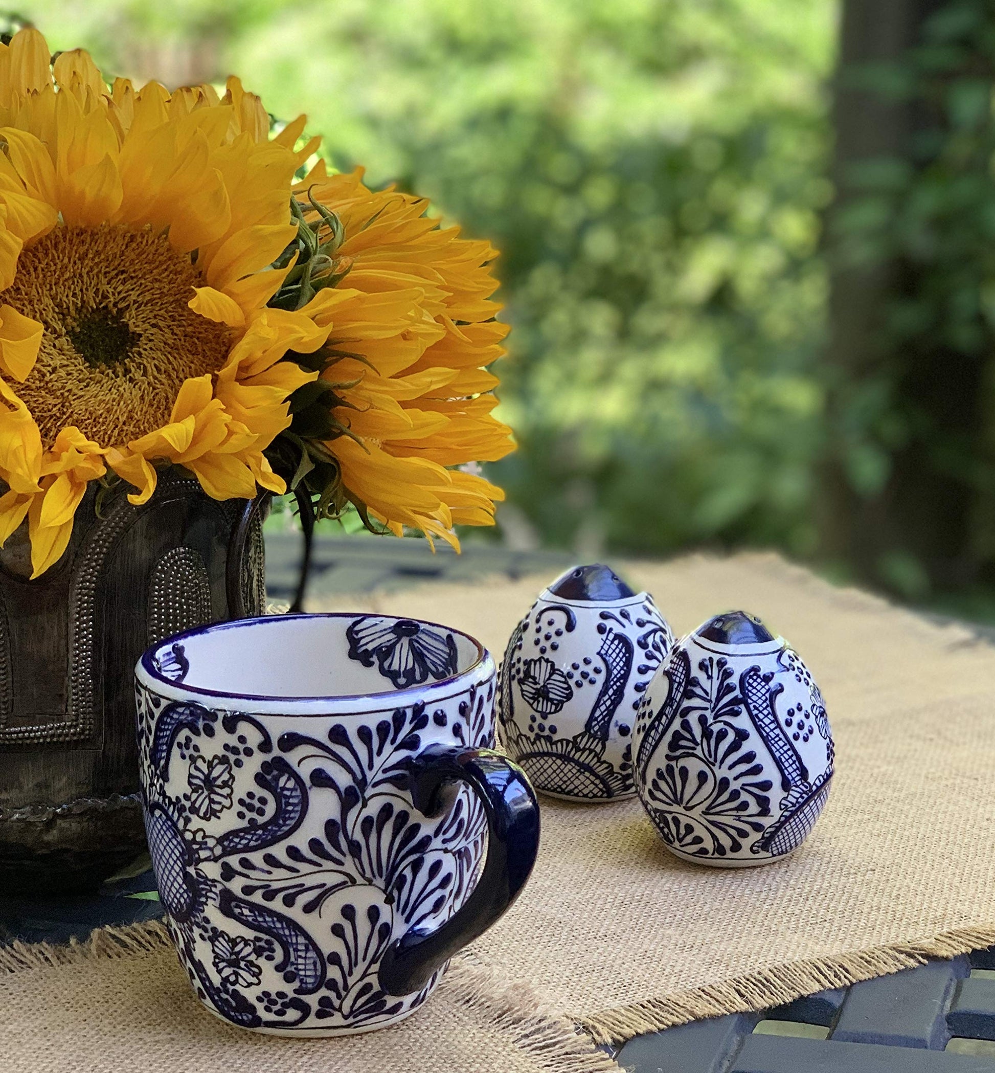 Details: One shaker features 5 holes and the other a single hole at the top, allowing for versatility and usability. This traditional Mexican pottery is crafted and hand painted by artisans in Mexico using traditional pottery technique. Each piece is highly textured and unique -- these pieces are gorgeous, yet very functional. Due to the hand-crafted nature, each piece may have slight variances in size or design - these nuances add to the beauty of the product. Lead-free, dishwasher and microwave safe. Not oven safe. ETHICALLY SOURCED: This eco-friendly pottery is ethically and morally sourced under FAIR TRADE agreement by Global Crafts, member The Fair Trade Federation and the World Fair Trade Organization. Fair trade not only ensures a safe and healthy working environment for the artisans but also provides them with an income-generating opportunity to support their daily lives. Fair trade is an alternative business model that values people, the planet, and profits equally. Fair trade aims to combat this widespread poverty by providing opportunity for economically disadvantaged producers. Each purchase helps to improve the lives of others in developing countries by providing a living wage.