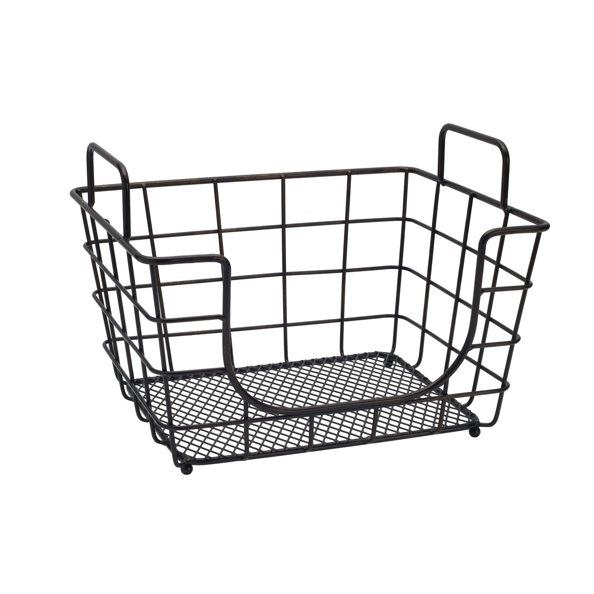 Details: From Gourmet Basics by Mikasa collection. This madam stacking and nesting basket with Acacia lid is crafted from high grade carbon structural steel with an antique Black finish for long lasting beauty even under rigorous use. The stacking and nesting capabilities of the basket allows for multiple uses and easy storage. It's great for storing or displaying food or other items and features a timeless design that will complement any decor. Wipe clean with damp cloth. Basket measures 14 inch long x 12-1/2 inch wide x 9-3/4 inch high.