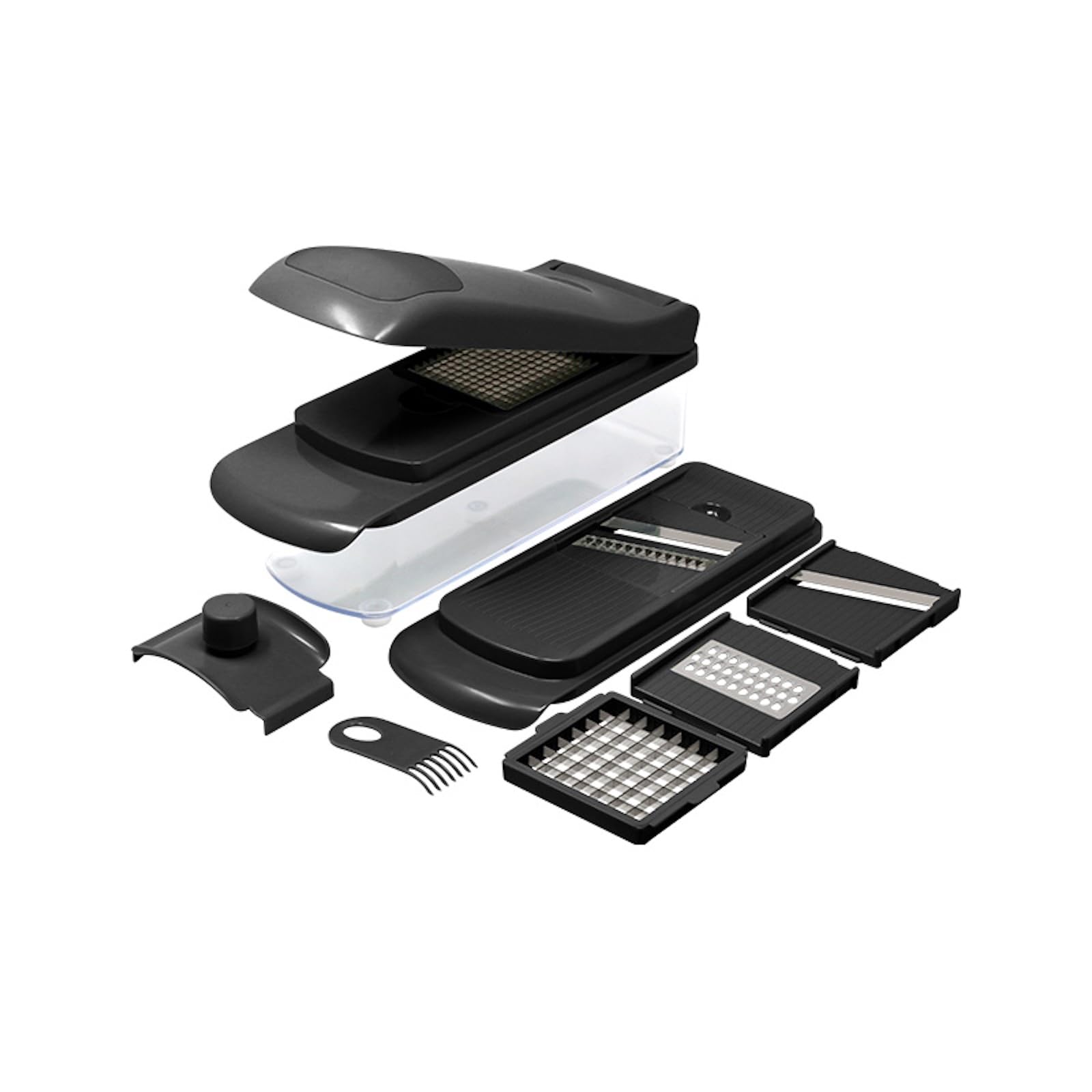 Gourmet Kitchen 10-Piece Vegetable Chopper, Spiralizer, Slicer – Multi-Functional Chopper & Slicer with 5 Blades, Food Storage Container and Hand Guard – Ideal for Vegetables, Fruits & More - Black