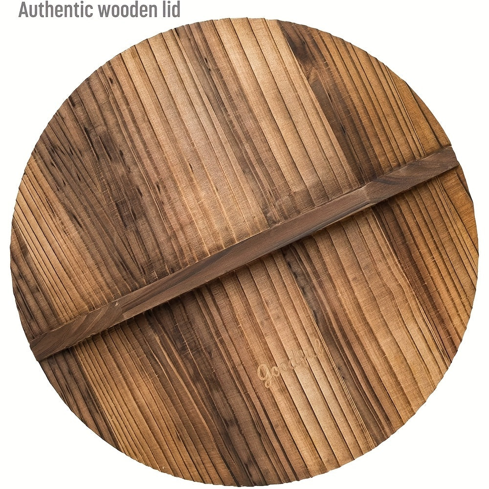 CLASSIC DESIGN OF AUTHENTIC PROFESSIONAL WOK: Wok is a carbon steel pan constructed to deliver authentic results. The professionally crafted wooden handle ensures maximum control and comfort with any cooking technique. The real wooden lid helps retain moisture to help food cook faster.