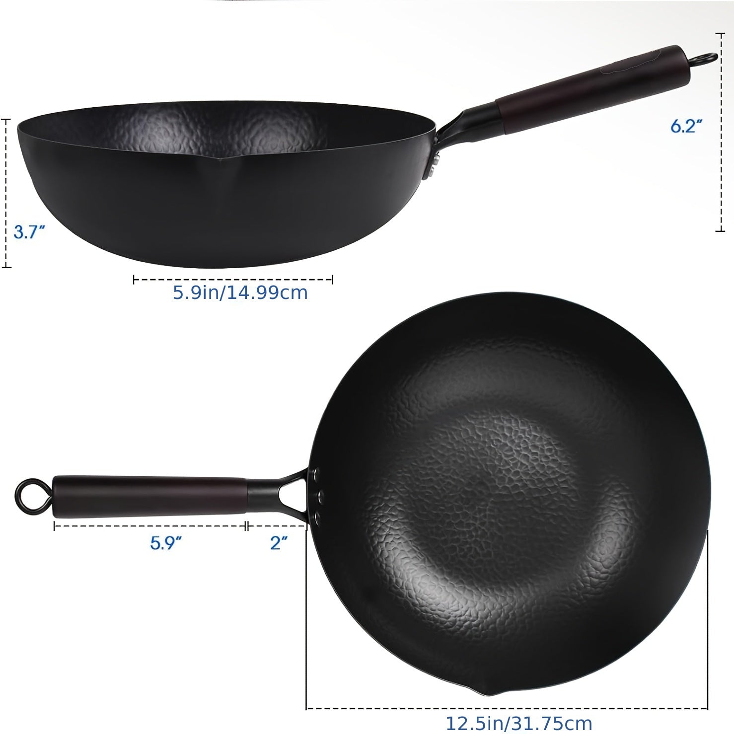 NATURALLY NONSTICK AND EASY TO CLEAN: Our natural non-stick, high-grade carbon steel interior of these pans allow food to effortlessly glide out of the wok. Allows for easy clean-up in between uses. Please read instructions on how to properly care for the wok for the longevity of this cooking set.