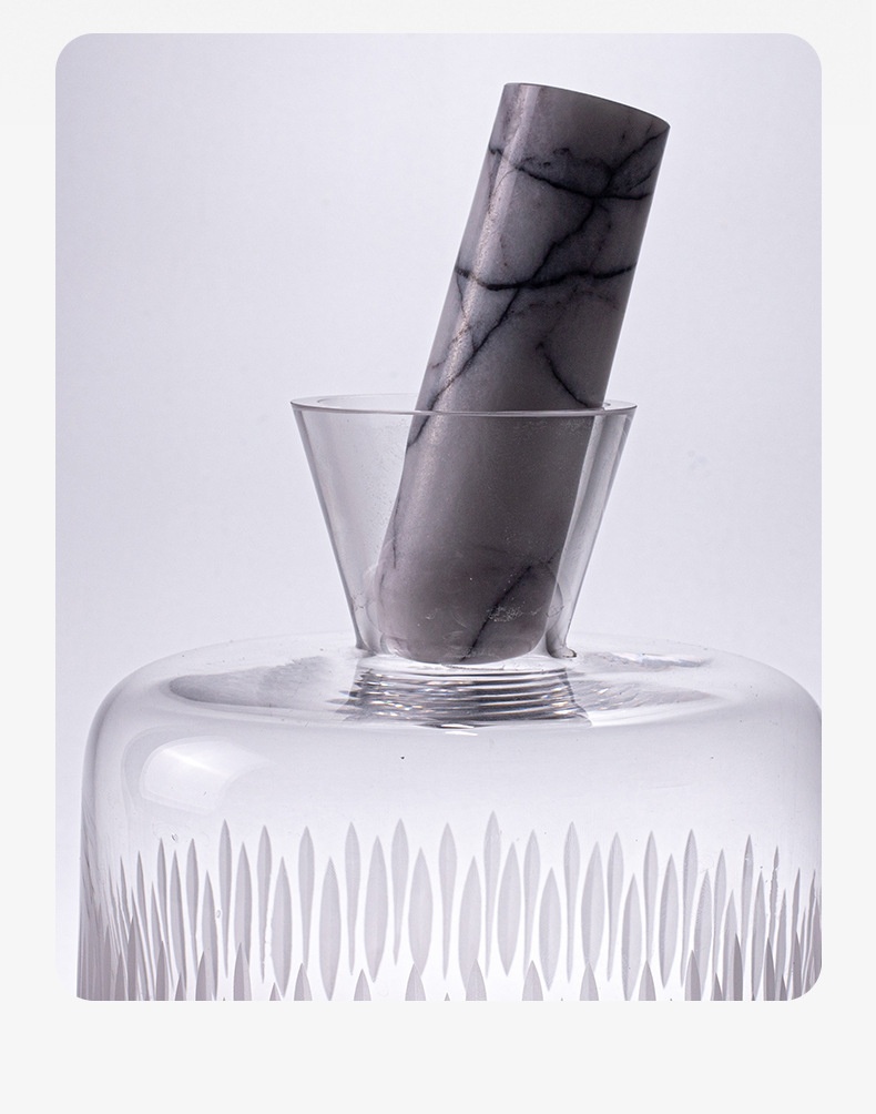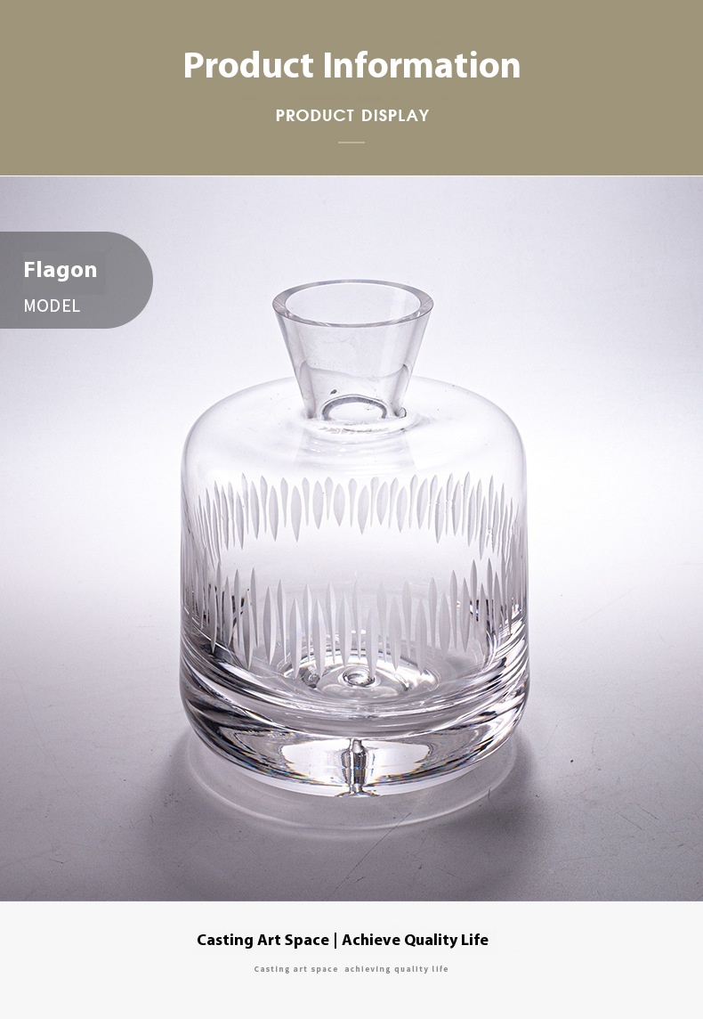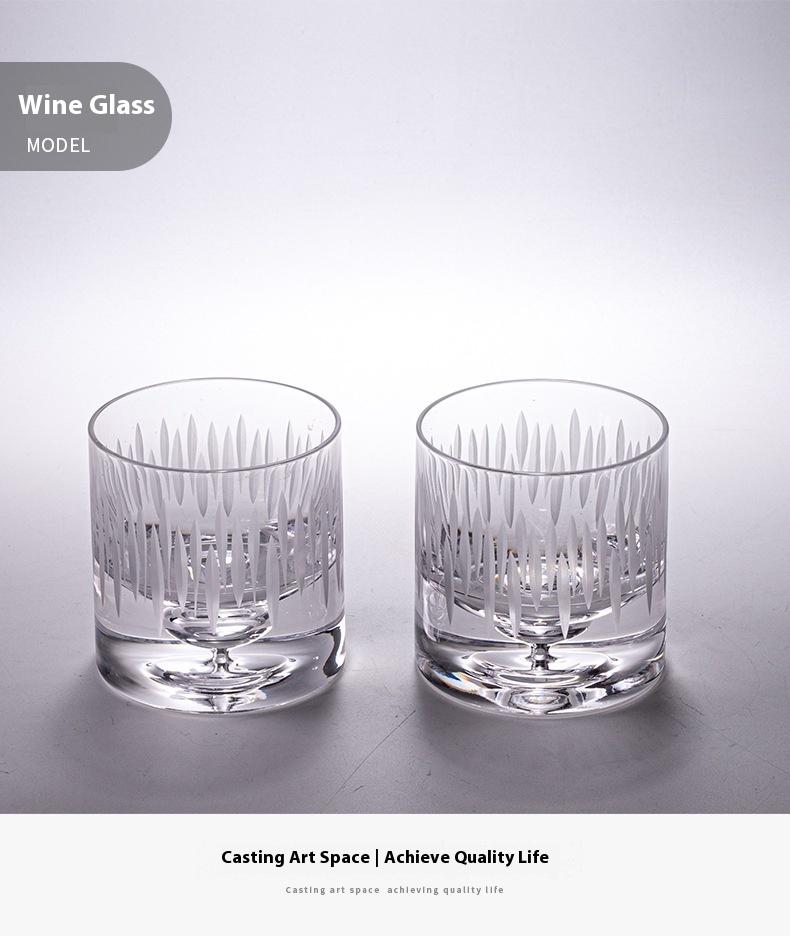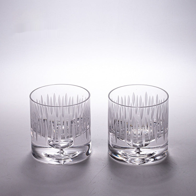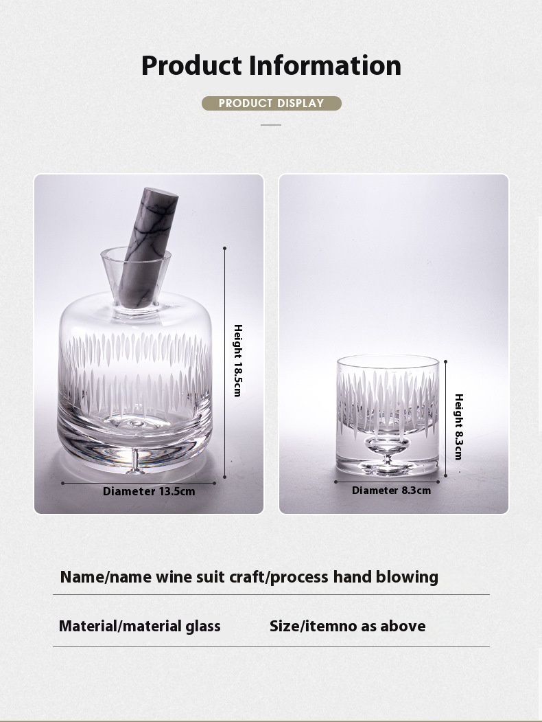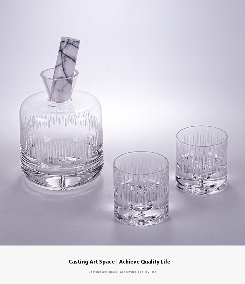 Carved Art Glass Wine Decanter and 2 Cup Set
