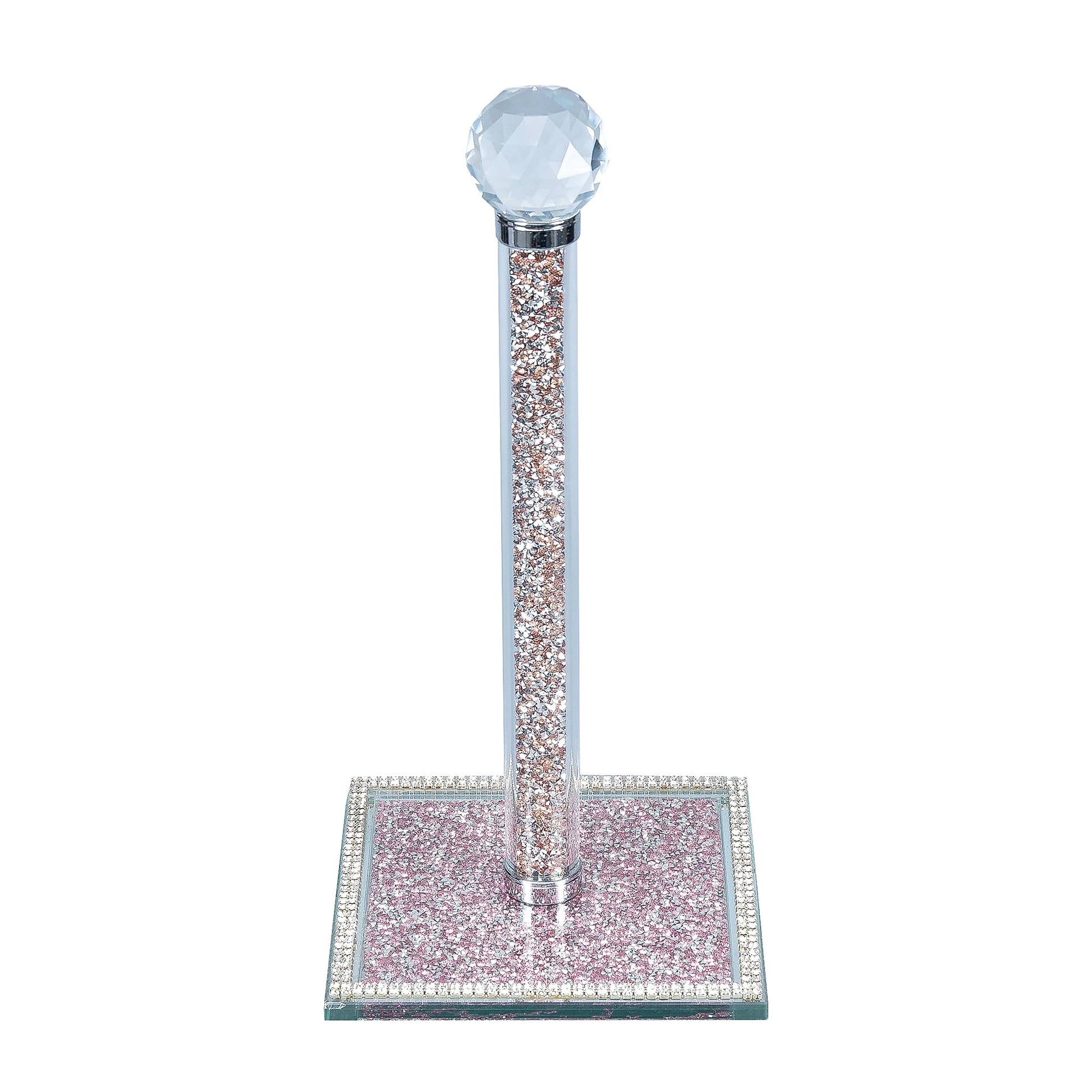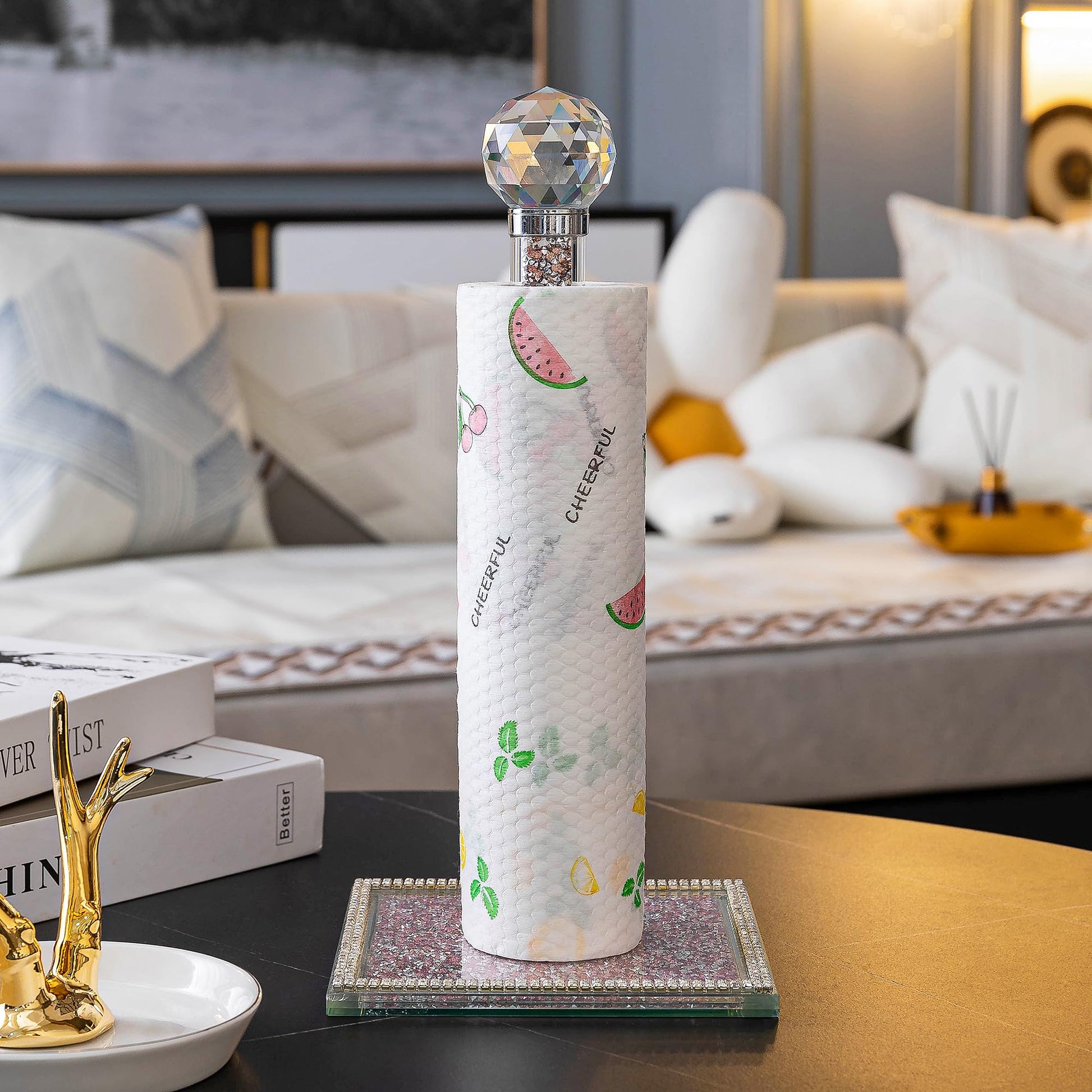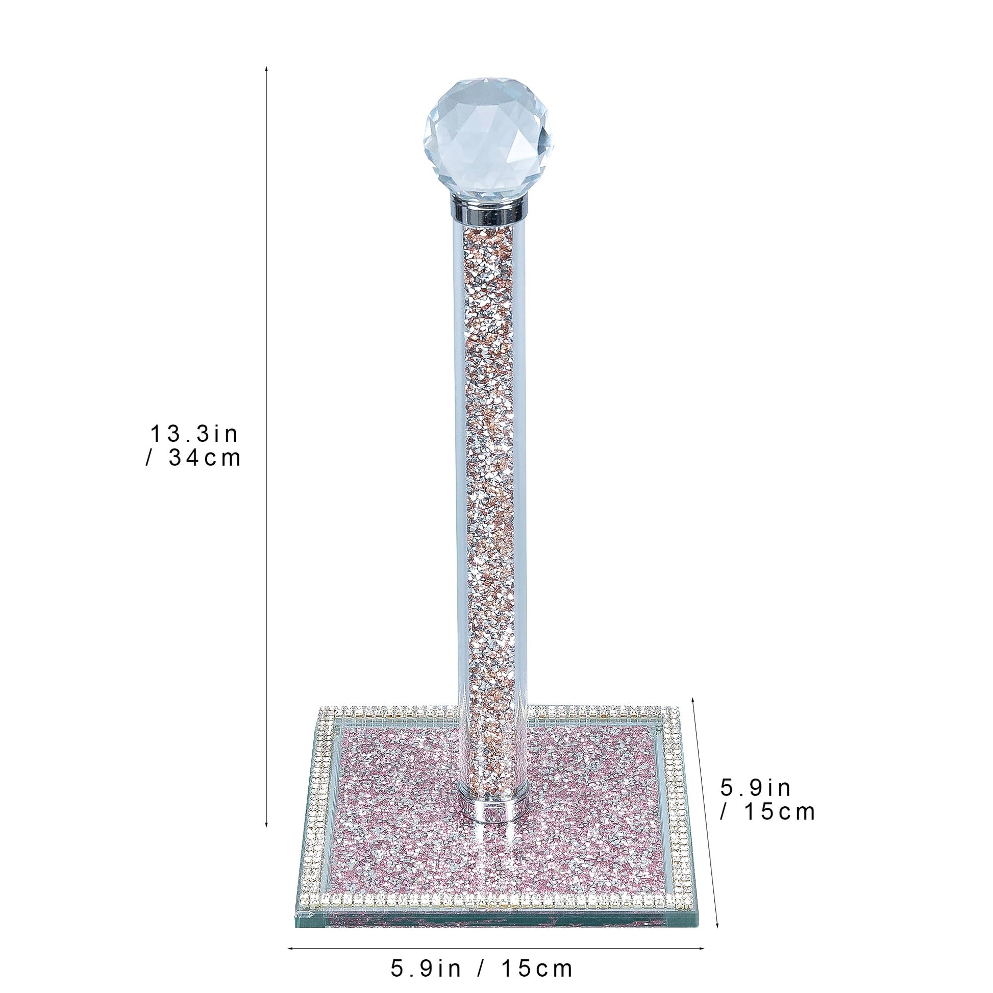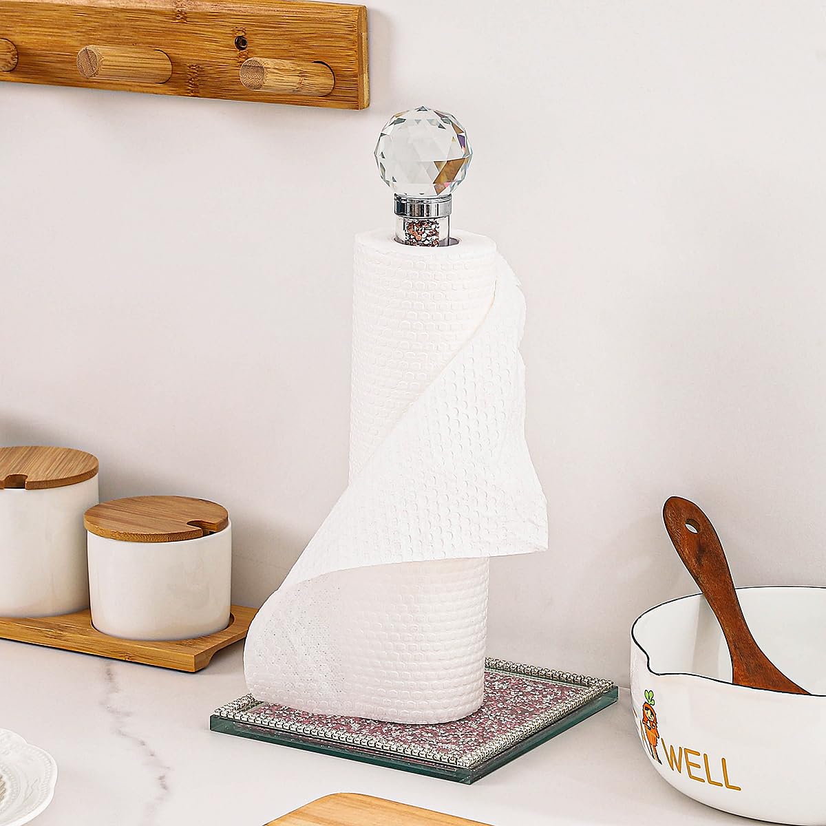 - [Features: This is a stunning eye catching, yet practical paper holder. It will hold any kitchen towel/roll well. A total statement piece which is perfect for entertaining. The crystal dome at the top is brimming with sparkling crystals and the base is a little wider than others, easy to tear paper with one hand. The large end cap can prevent paper stand from jumping out when tearing.
