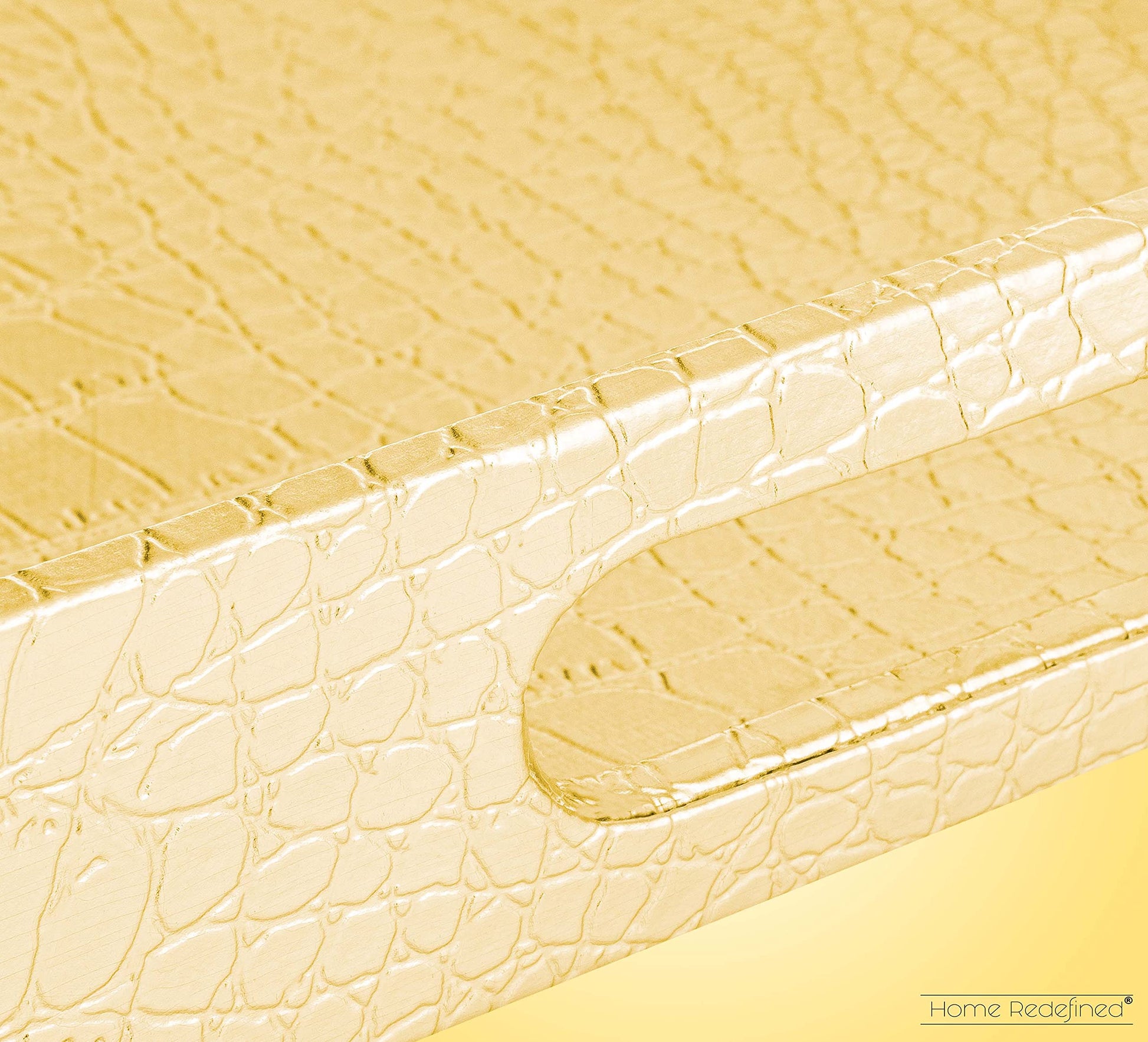 Home Redefined 18"x12" Gold Glossy Crocodile Faux Leather Serving Tray Beautiful Modern Elegant Decorative Tray with Handles Ottoman Coffee Table Tray for All Occasion's