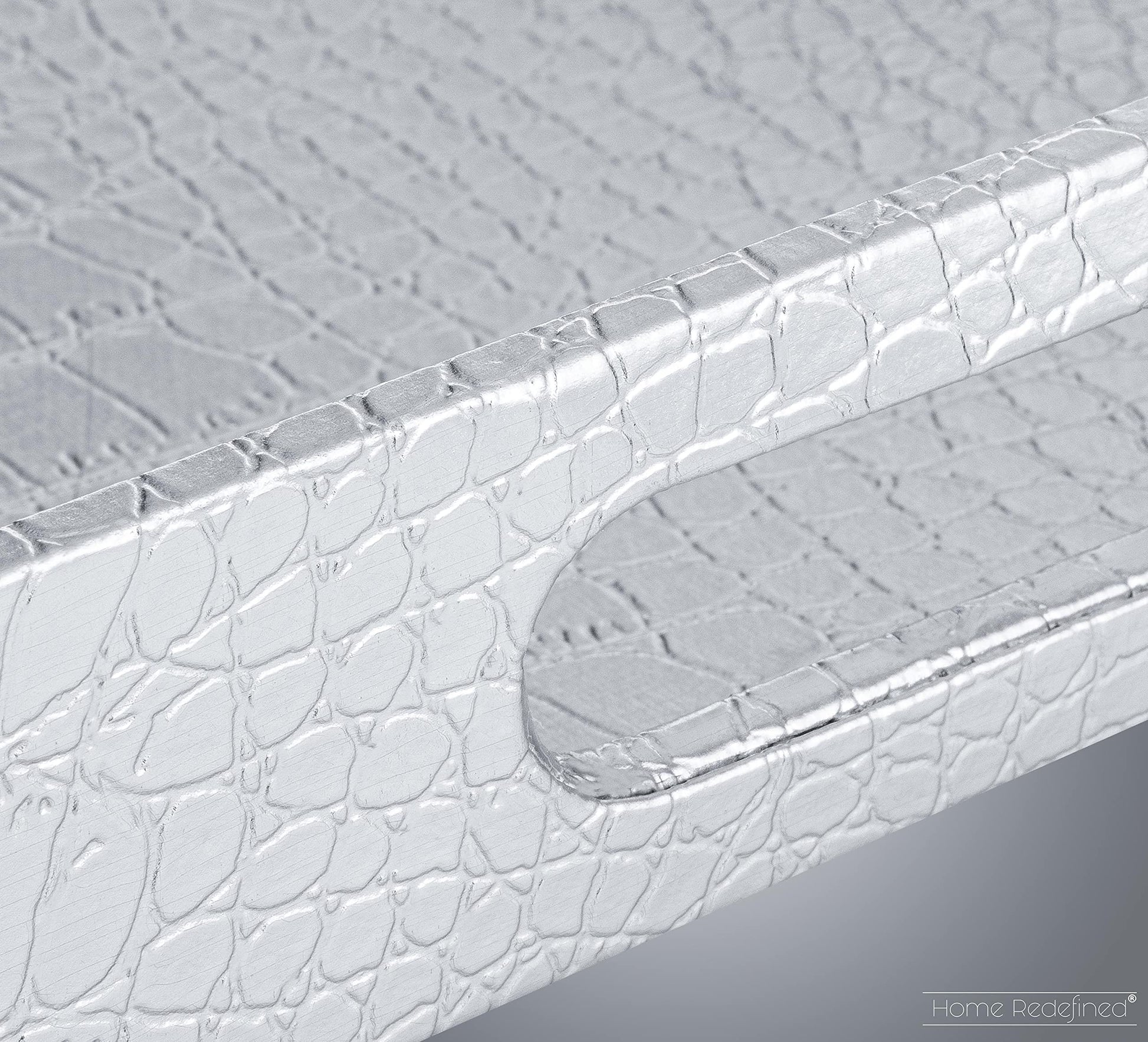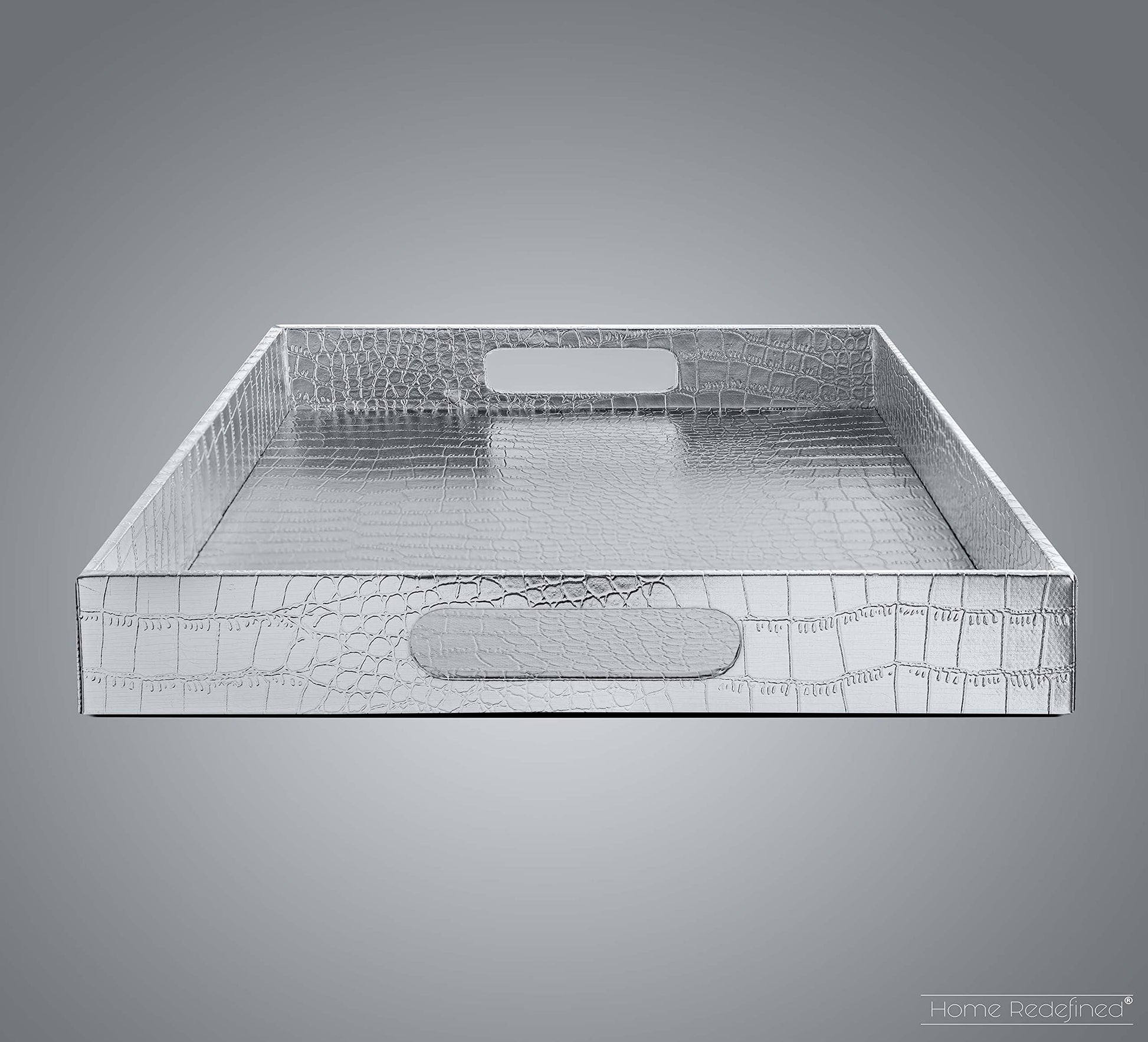 Home Redefined 18"x12" Silver Glossy Crocodile Faux Leather Serving Tray Beautiful Modern Elegant Decorative Tray with Handles Ottoman Coffee Table Tray for All Occasion's