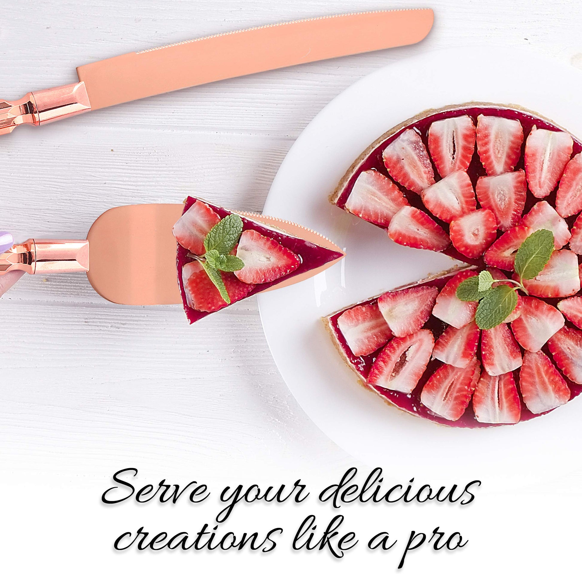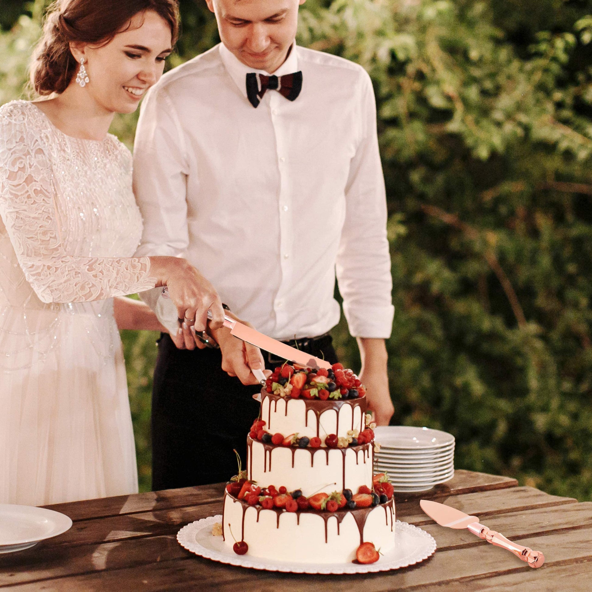 - π΄ ELEGANT GIFT BOX - READY TO BE GIFTED β This Rose Gold wedding cake knife and server set makes a great gift to any soon to be married couple! Each serving set comes in a modern, elegantly designed gift box in burgundy color. You can also offer our cake cutter set as a present for Birthdays, Motherβs Day, Anniversaries or even Housewarming and Holiday parties!