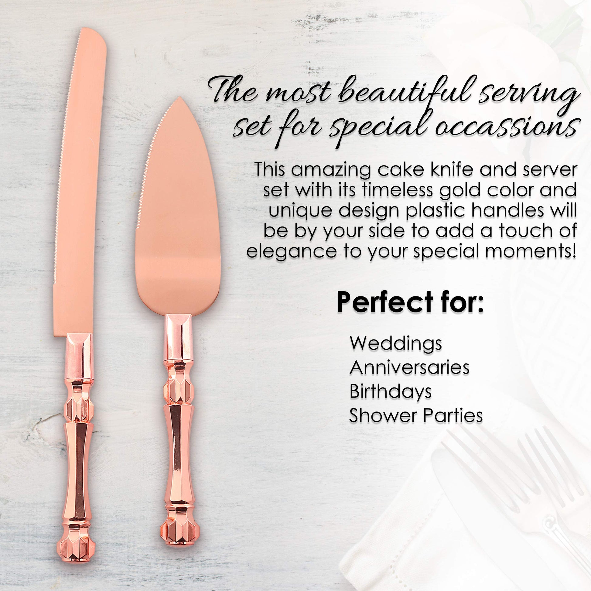 - π΄ THE MOST BEAUTIFUL SERVING SET FOR SPECIAL OCCASIONS - From your Wedding Day to Anniversaries, Birthdays and Shower Parties, this amazing Gold cake knife and server set with its timeless gold color and unique handles will be by your side to add a touch of elegance to your special moments!