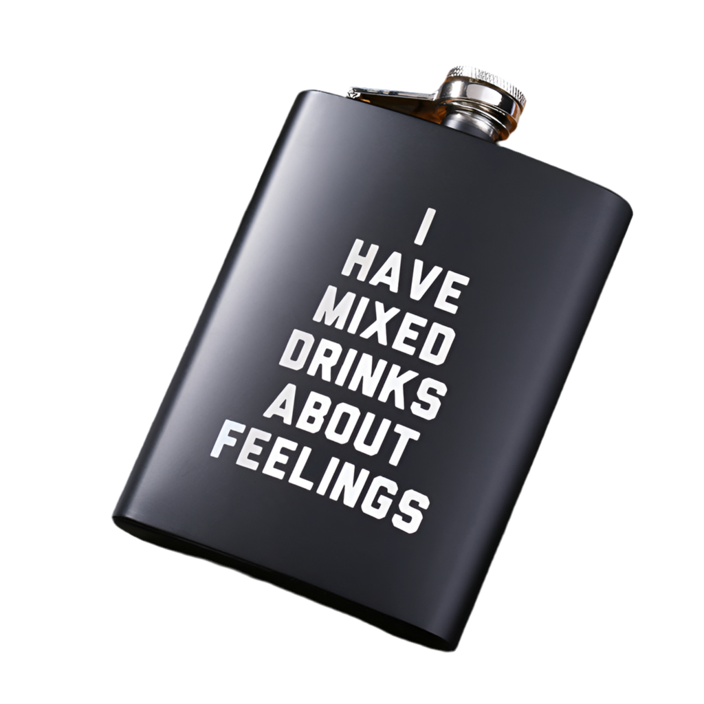 “I Have Mixed Drinks About Feelings” Flask plus 3 Other Sayings