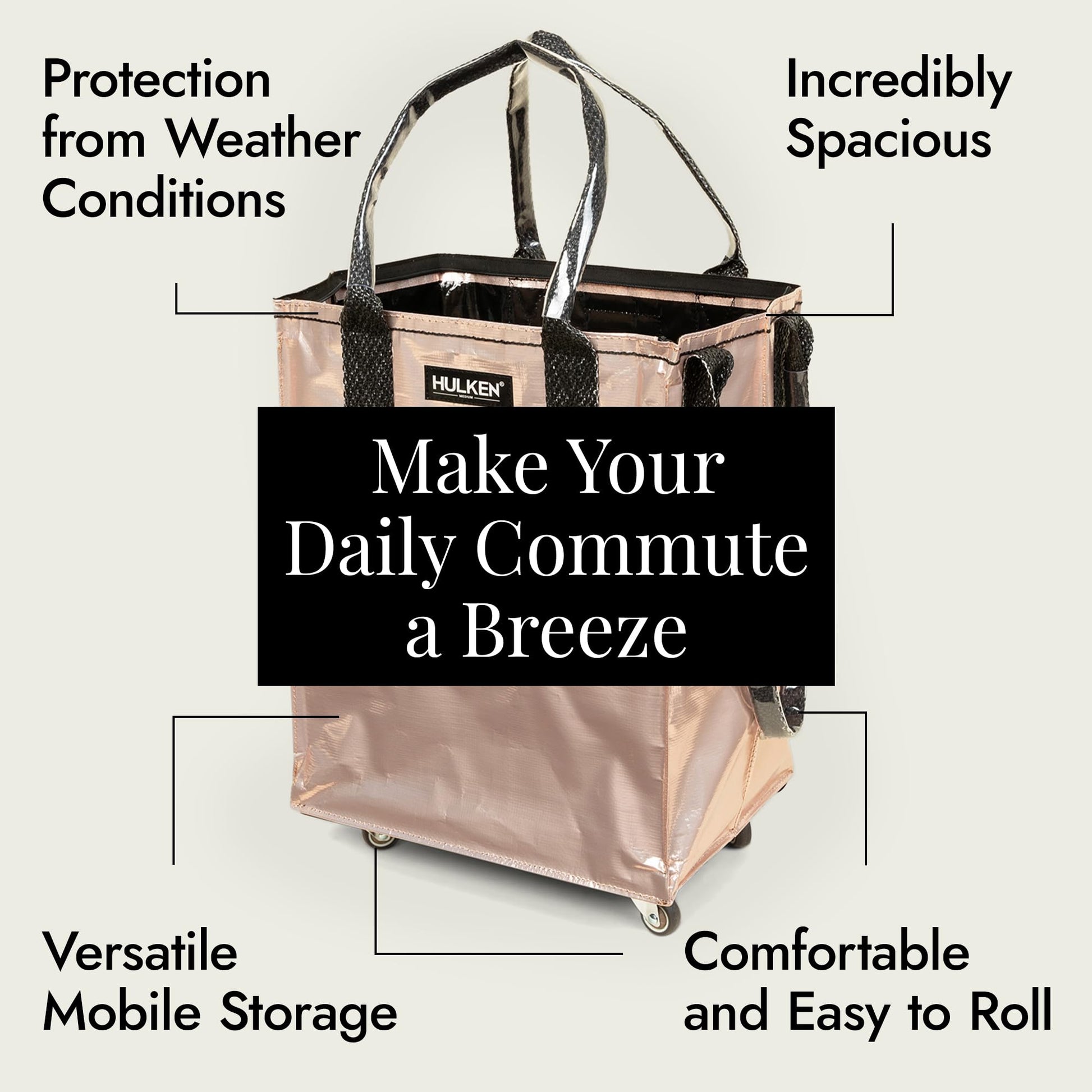 - DESIGNED FOR EFFORTLESS SCHLEPPING: Combining unbreakable ergonomic handles and multi-surface swivel wheels, the Hulken commuter tote is a rolling shopping bag that makes you feel limitless!